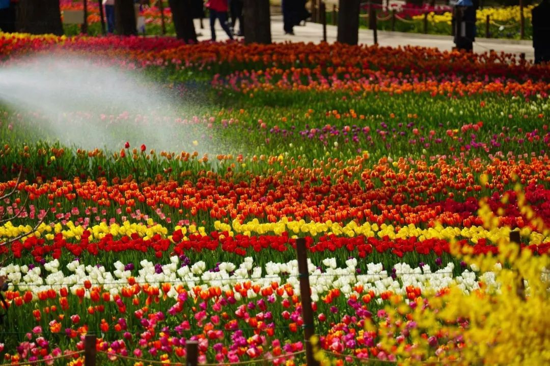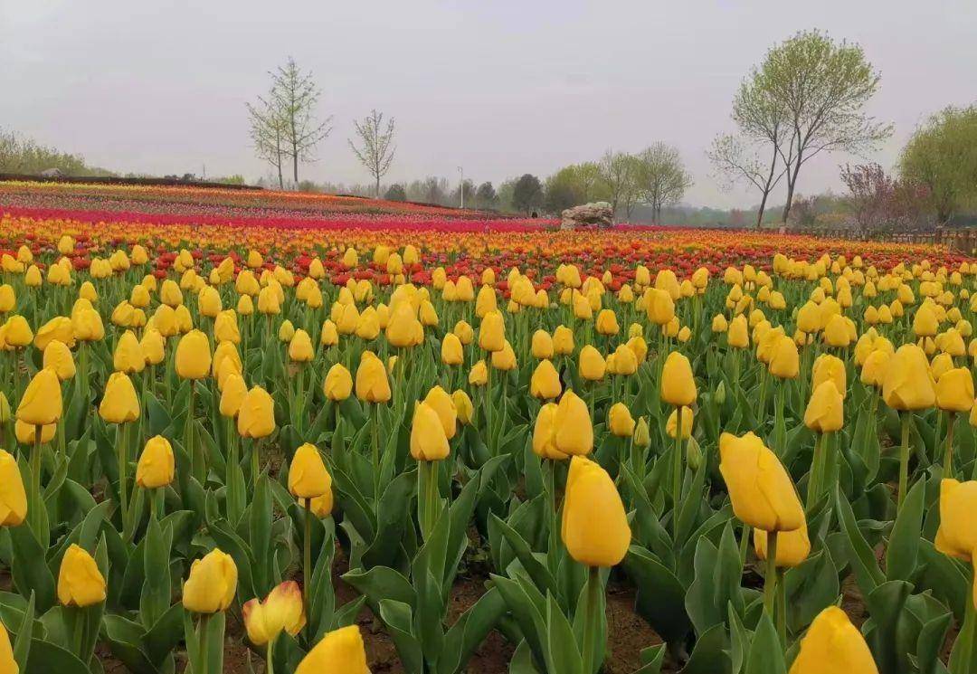 园区内外种植49个品种的郁金香,占地面积3000多平方米,预计总量约有15万株。