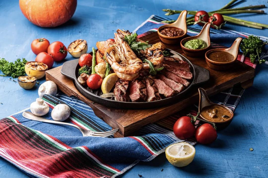 炙烤澳洲肉眼牛排配虎虾拼盘