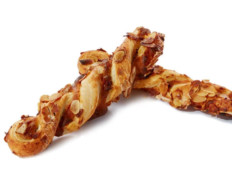 波浪形像法棍像麻花,扁桃仁镶嵌其中,根根有劲,酥酥脆脆
