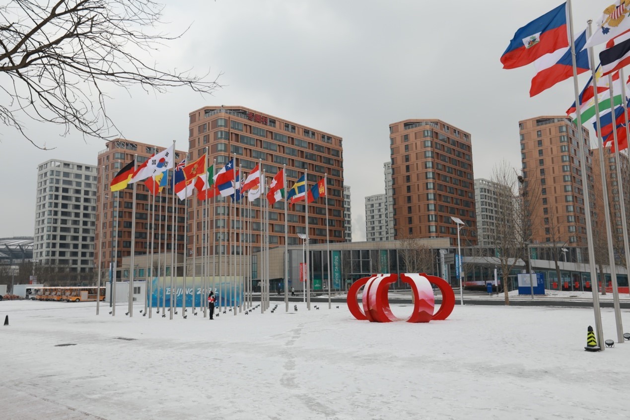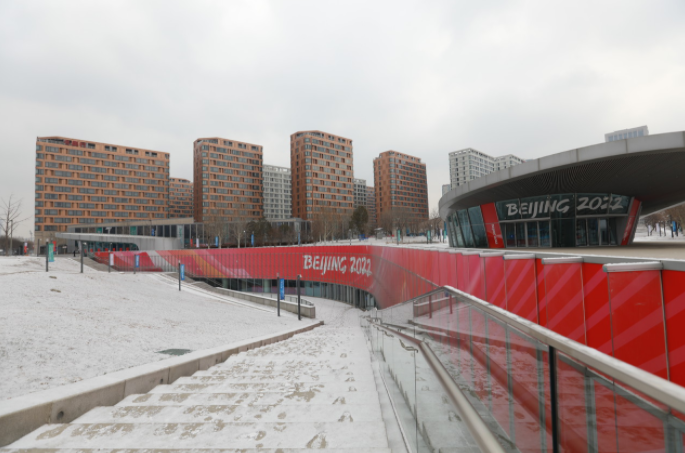 雪后的北京冬奥村银装素裹、分外美丽。