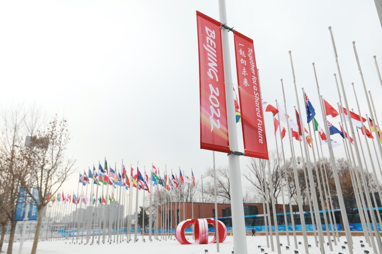 大寒,二十四节气中的最后一个节气。北京下雪了,这是2022年的第一场雪。雪后的北京冬奥村银装素裹、分外美丽。旗帜广场上,各国的国旗在纷飞的雪花中迎风飘扬。在漫天纷飞的雪花中,村里各个领域的工作人员仍然坚守岗位,做赛前的最后的冲刺。