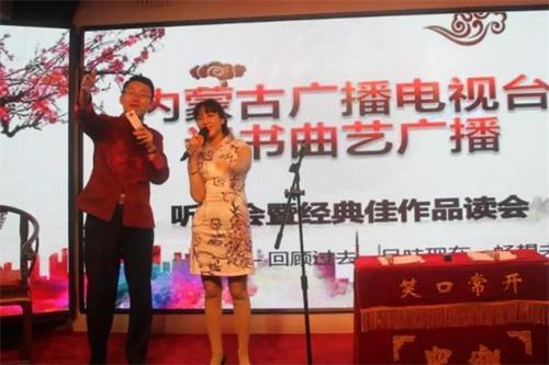 本网讯4月22日,内蒙古广播电视台评书曲艺广播听友会暨经典佳作品读会在呼和浩特市德顺源大召店举行。现场古色古香,座无虚席,主持人逐一从广播后台走上前台,并与听众、观众共同诵读经典历史故事、聆听书香韵味、品味烧麦美食。