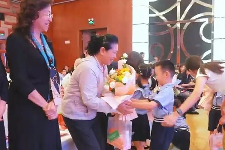 最后,朝外街道办事处党工委副书记刘贺鹏、纪工委书记平萍、办事处副主任韩冠宇、办事处副主任苏磊和陈经纶幼儿园的小朋友们一起,为8所学校的教师代表们送上美好的节日祝福。