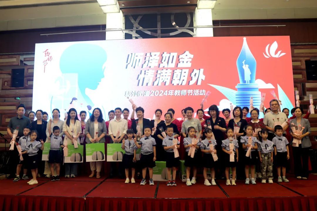 第40个教师节到来之际,朝外街道在昆泰嘉华酒店组织开展“师泽如金 情满朝外”2024年教师节活动,辖区8所学校代表、企事业单位代表、机关科室负责人、各社区书记以及家长代表共聚一堂,向辛勤耕耘在教育一线的教师们致以最崇高的敬意和最诚挚的节日祝福。