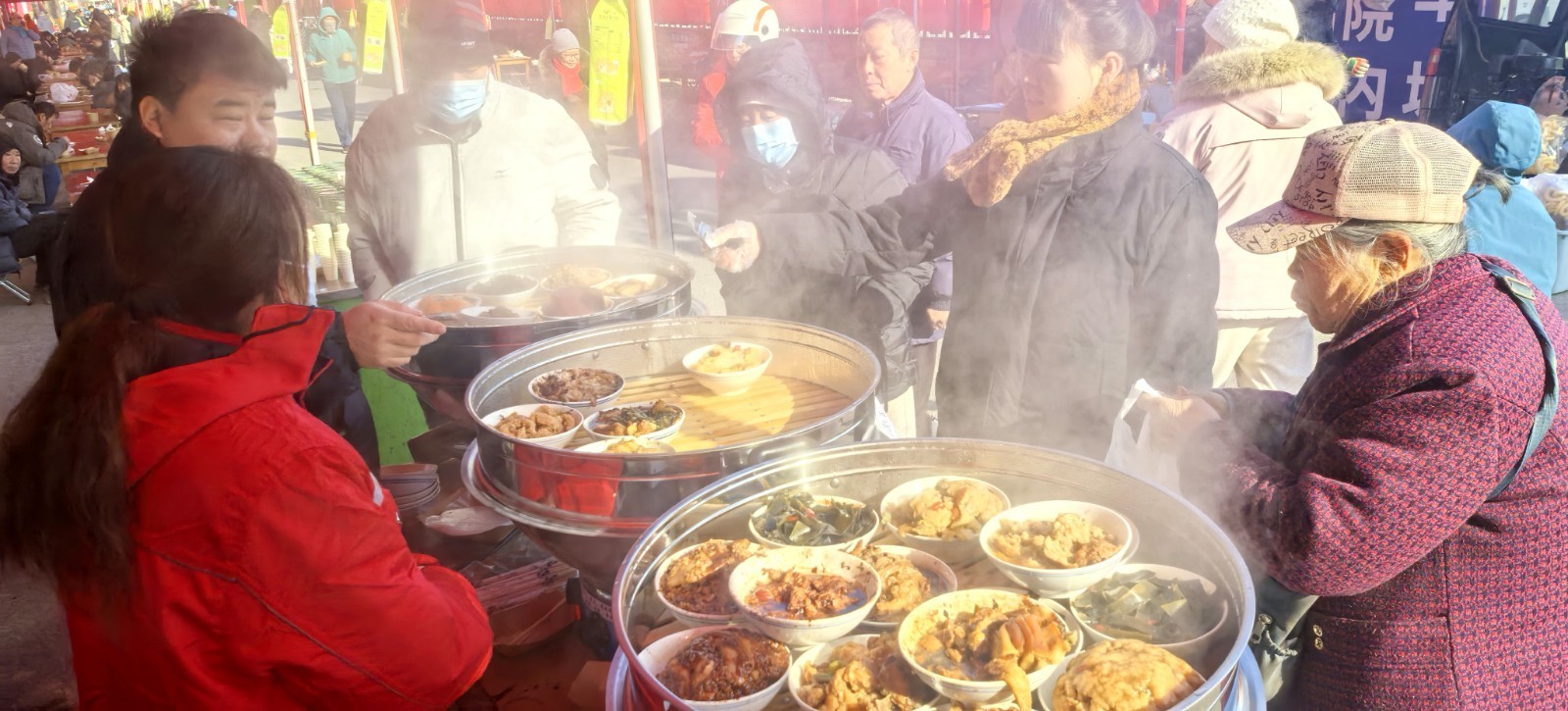 1月26日,农历腊月初八,正值中国传统节日“腊八节”,苹东市集开展免费送腊八粥活动,市集内人声鼎沸、暖意升腾,一碗碗滚烫香甜的腊八粥,为冬日平谷增添了浓浓的民俗味与烟火气。