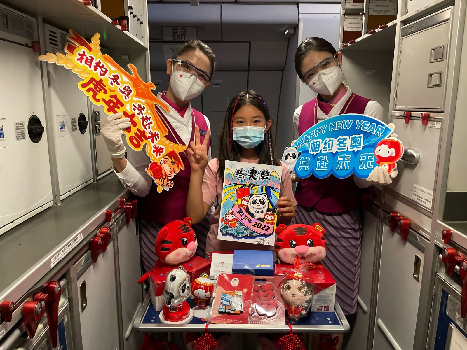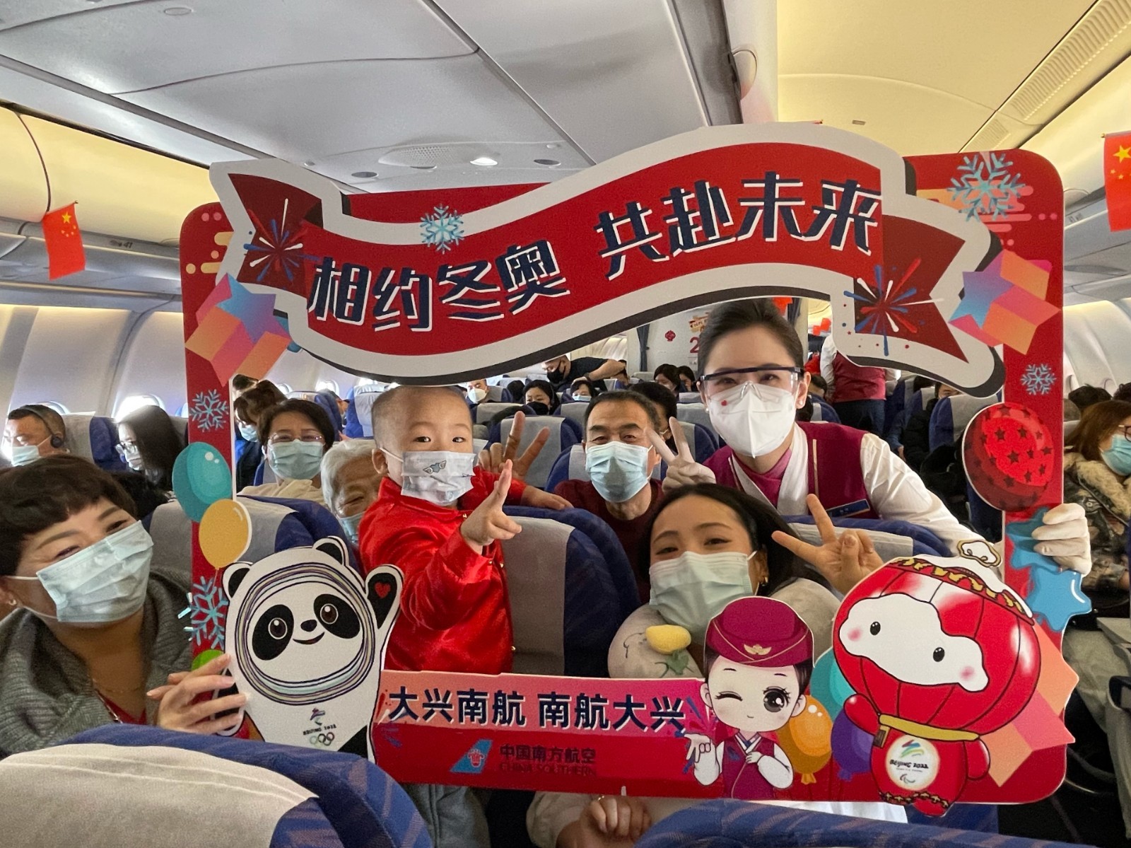 1月29日南航北京分公司在CZ6759/60等三个航班上举行了“相约冬奥,共赴未来”为主题的机上活动。