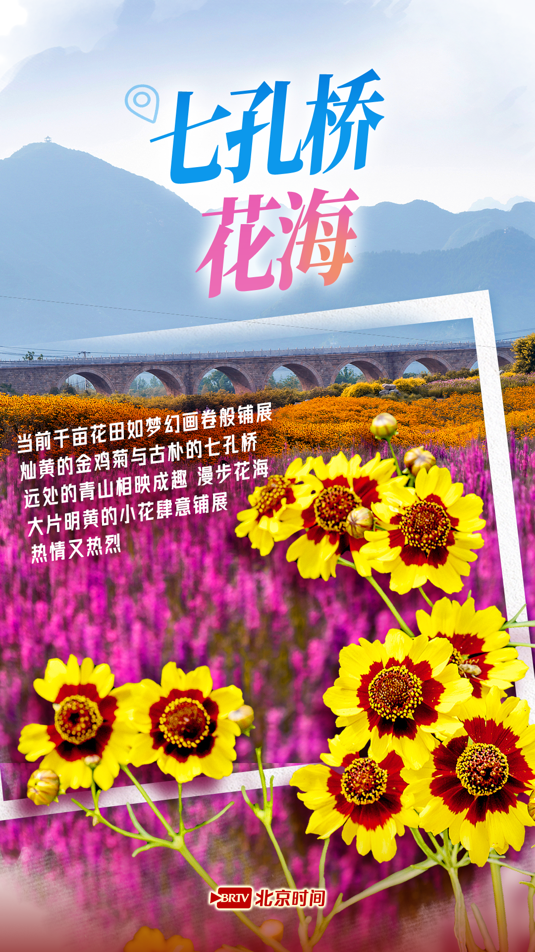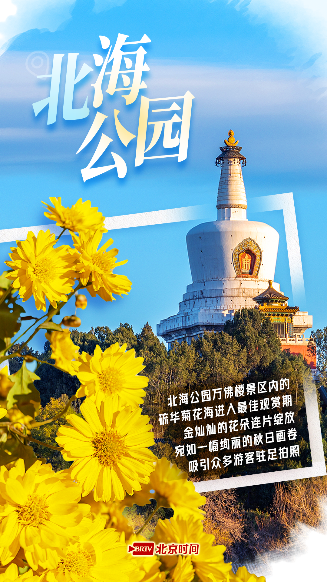 北京初秋四大金色花海已上线,每处都是好逛又好拍!北海公园万佛楼硫华菊连片绽放;奥森南园黄秋英中体验 “人在花中游”;延庆四季花海数千亩万寿菊染黄山野;七孔桥金鸡菊与古桥青山相映,尽显秋日热情。初秋限定,快快出发尽享景!