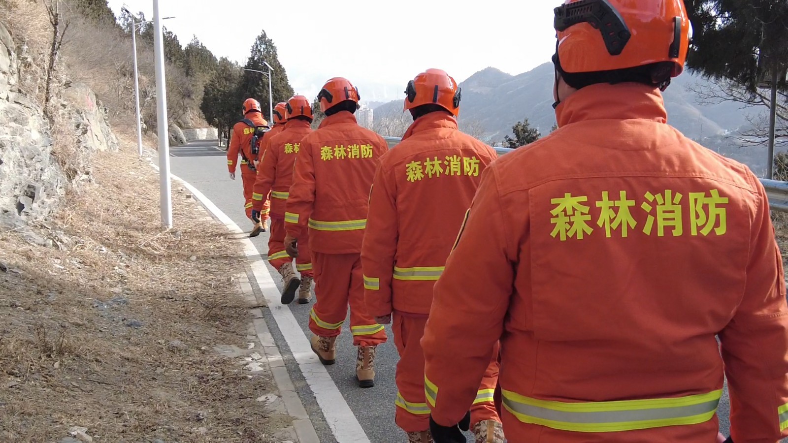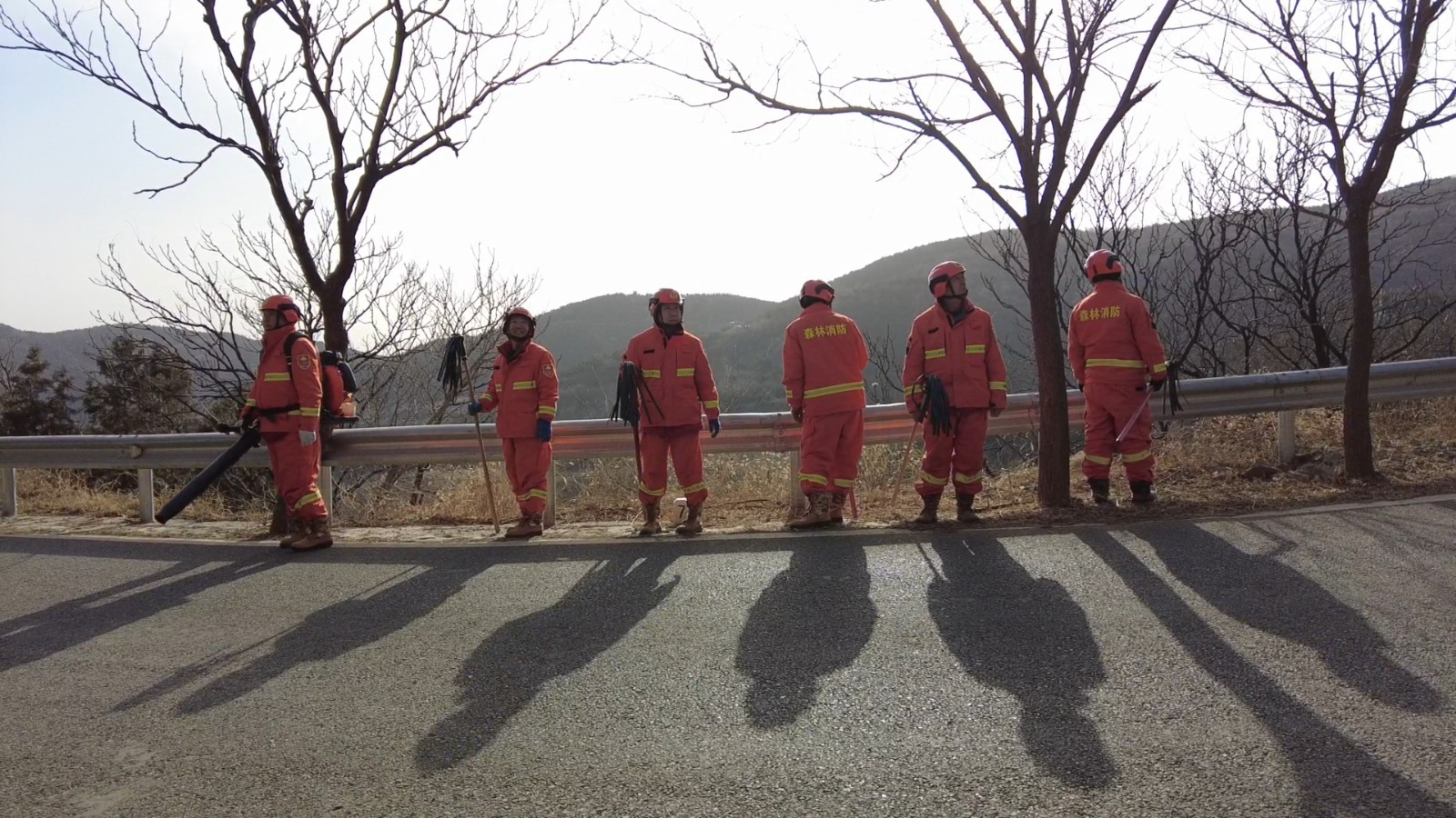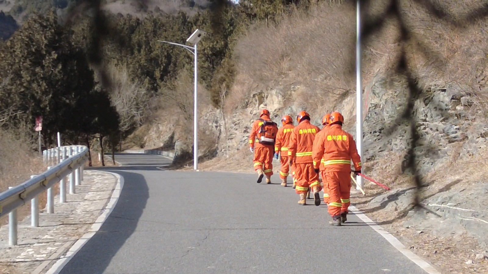 另一组队员则手持灭火装备,沿着防火道仔细巡查。他们不仅密切关注路两侧的情况,还不时抬头张望山体,低头查看山林,全方位无死角地进行守护。