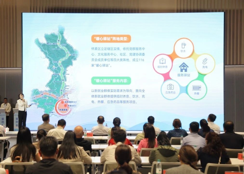 在发布仪式上,怀柔围绕制度、阵地、空间、路线、服务“五大友好”,正式推出“怀柔骑迹”工作品牌和服务清单,为新就业群体送上了一份包含了12项服务内容的暖“新”大礼包。活动中,多家社会单位也来到现场签订合作协议,加入骑迹友好联盟,共同为新就业群体提供友好环境、就业指导和更高质量的服务。随着会场上“15分钟暖心服务圈”的点亮,怀柔在全区范围内构建的覆盖更广泛、服务更多元、生态更友好的暖“新”服务网络也随之揭晓,更好地实现了服务怀柔科学城建设发展、完善新业态服务体系、便利城乡居民生活的多方共赢。