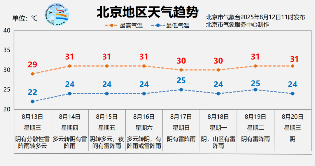 8月12日7时25分,北京市发布暴雨蓝色预警