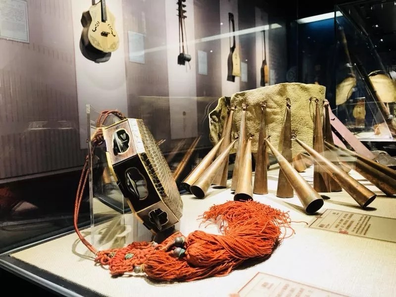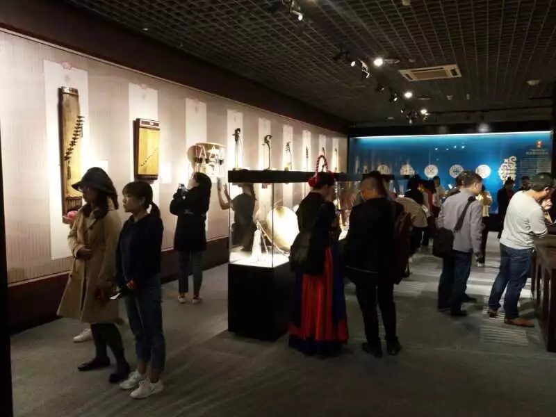 器乐表演结束之后,参观者们带着对民族乐器的无限向往和期待走进位于博物馆二楼的《大地回声——中国少数民族乐器文化展》展厅,欣赏一件件精美的民族乐器。
