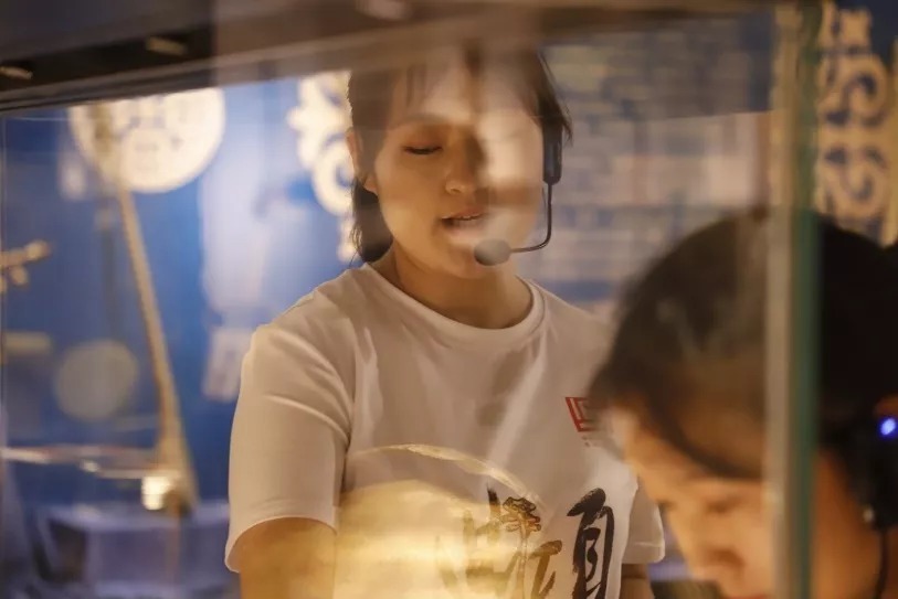 志愿者中心的讲解员们与观众分享着乐器背后的故事。
