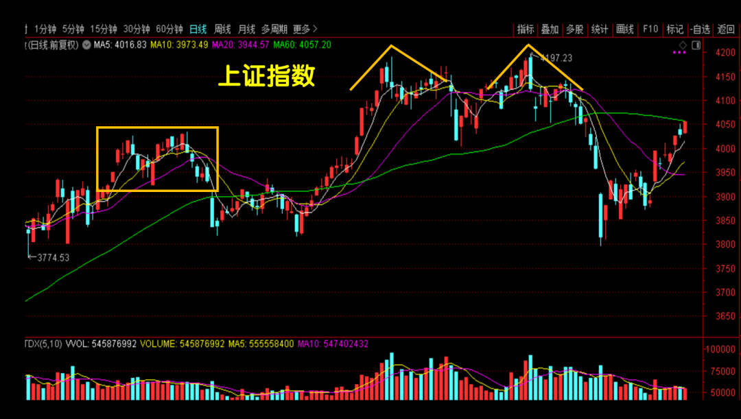 如果把4190点和4197点看作“双头”,目前大盘反弹到了左肩的位置。