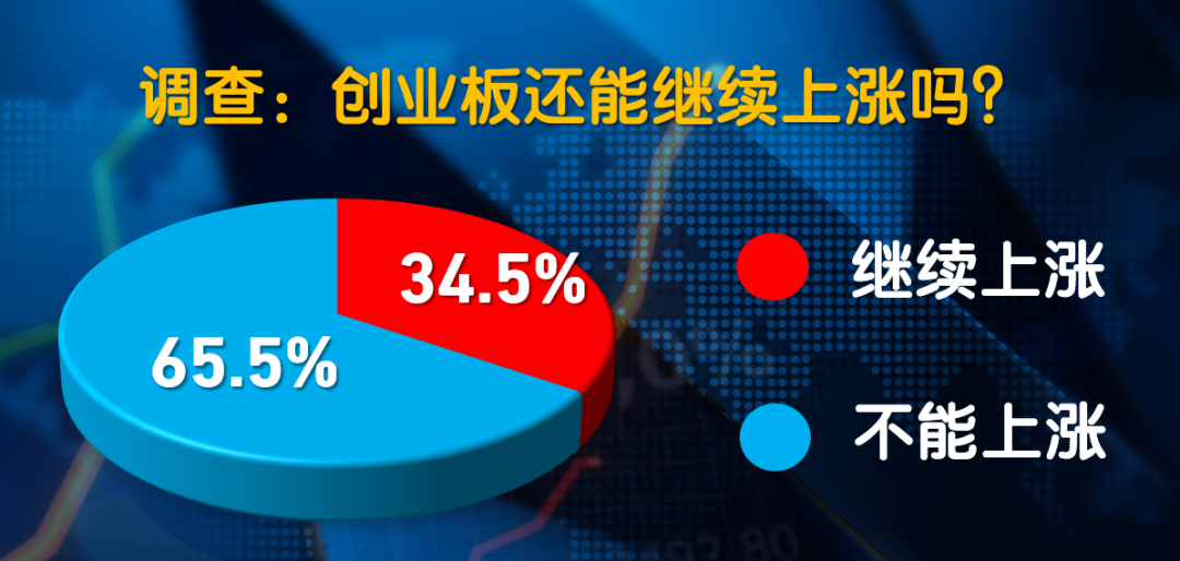 某知名财经网站做了一个投票调查,“创业板创十多年新高,还能继续上涨吗?”在2.5万投票者中,34.5%的人认为能,65.5%认为不能。