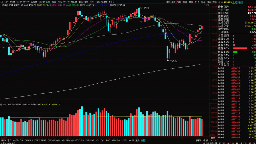 一季度经济数据良好,今天大盘也出现高开高走,收复了昨天的阴线实体,但对60日均线却迟迟不能突破?量能也有一定萎缩。