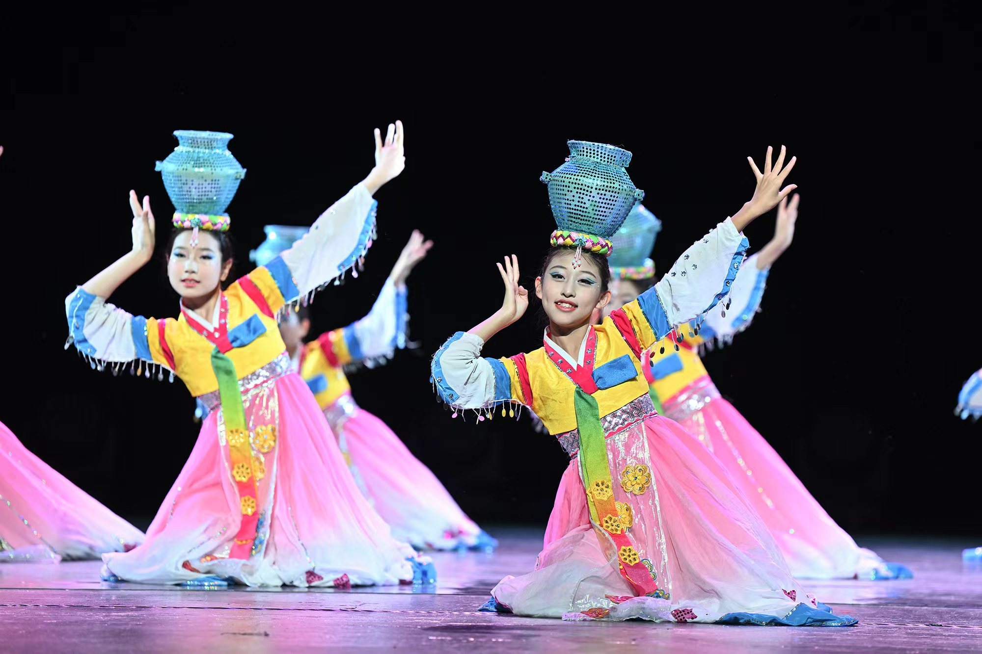 随后,同学们相继带来多民族舞蹈展演,不仅有苗族舞蹈《岜沙猎人》、土家族舞蹈《阿达毕的心声》,还有朝鲜族舞蹈《嬉舞泉韵》、汉族舞蹈《青伞映红妆》、蒙古族舞蹈《美丽的草原我的家》、维吾尔族舞蹈《锦绣中华》和藏族舞蹈《欢乐牧民生活》等民族舞蹈串烧,演出热烈欢快、独具特色,让观众们感受到我国各民族舞蹈的艺术特色和人们对美好生活的热爱与期待。