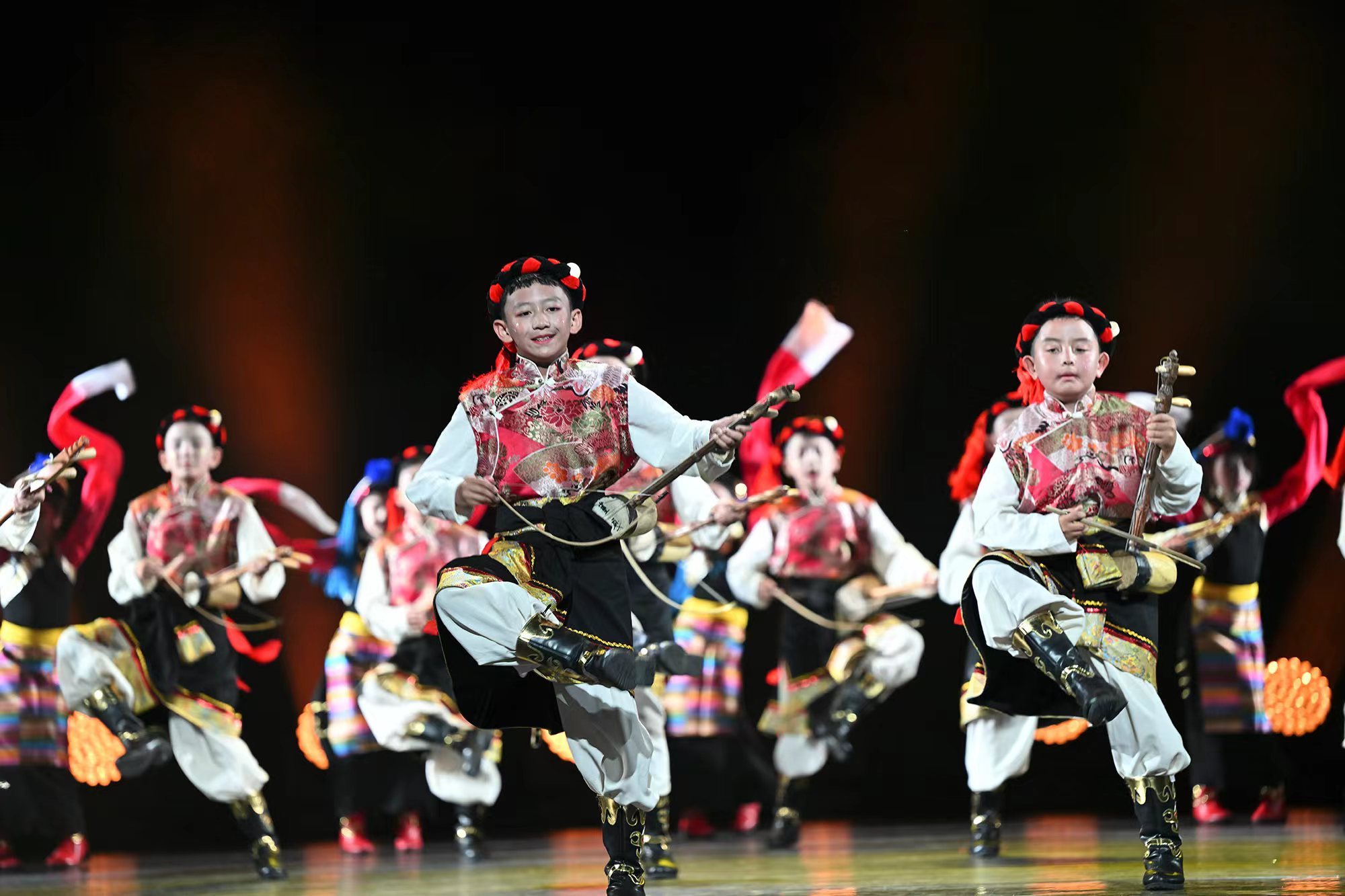 演出伊始,来自拉萨市和北京市的小学生们相继带来《弦音新生》和《快乐节》的两个藏族舞蹈演出。其中,《弦音新生》芒康弦子舞是西藏自治区的传统舞蹈,也是国家级非物质文化遗产。舞蹈展现了康巴地区浓郁的民族风情,蕴含着文化的传承和藏族少年们奋发向上、健康快乐的精神风貌。