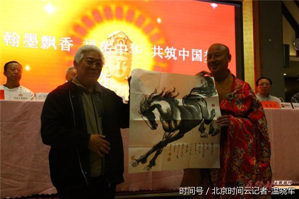 在中国水墨画历史上,骏马图一直都是画家喜欢创作的作品,俊马,又称“龙种”, 自古至今,无数的英雄人物都与骏马有着不解之缘,在历史的典故中,忠义关羽,胯下赤兔马;楚霸王项羽,坐骑乌骓良驹,足以显示出骏马在人们心中的地位。为了祝贺书画交流会的圆满成功,王子忠主席代表中国书画家联谊会,亲自将其本人创作的“写意骏马图”捐赠与中国五台山书画艺术研究院。