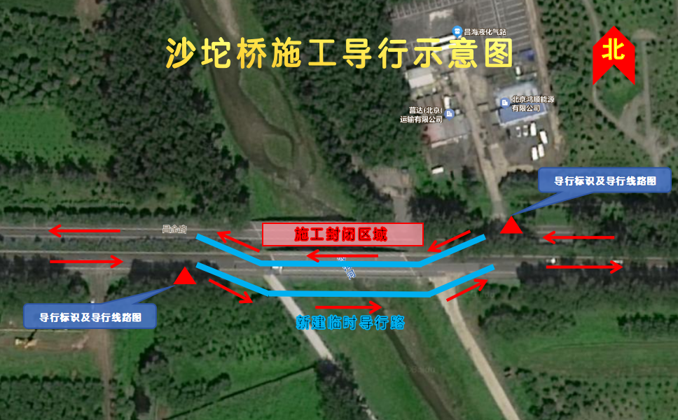 沙坨桥封闭北半幅桥面(东向西),该方向车辆改至南半幅桥面通行;在南半幅桥面的南侧新建导行路,原南半幅(西向东)车辆请移至南侧新建导行路行驶。