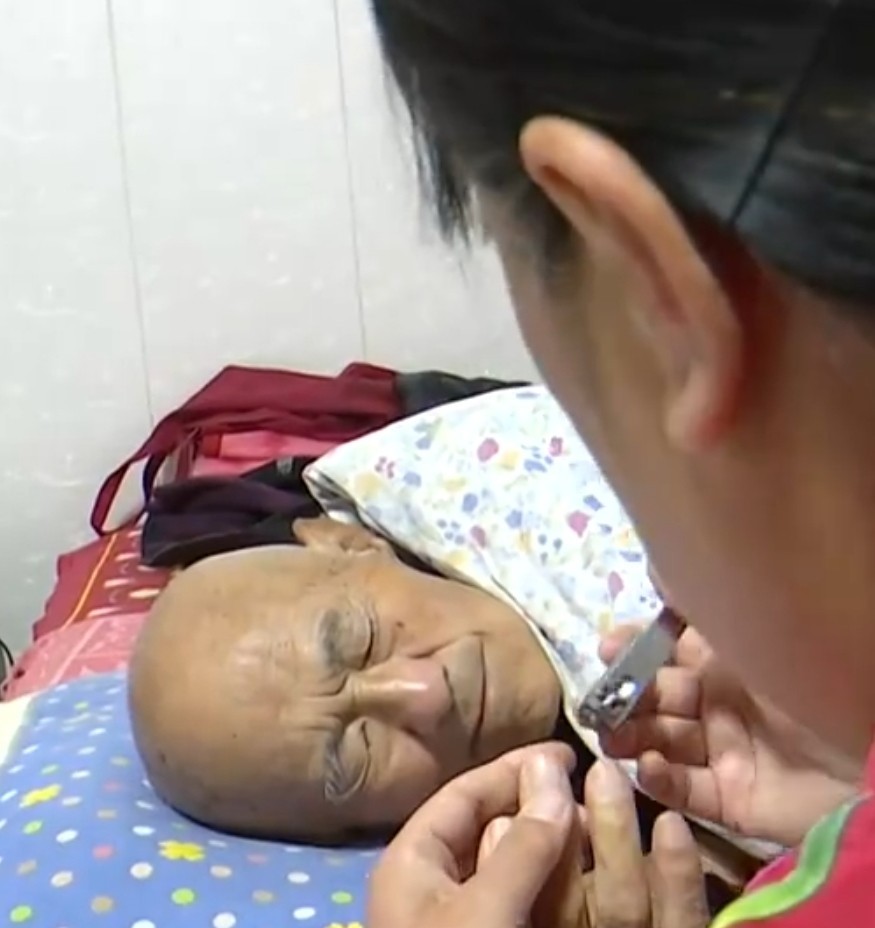 86岁的王跃祥老人身患癌症已经8年,现在居家养老,每周都有敬老院的服务人员上门照护,还有社区卫生服务中心的医生定期上门诊疗,家属张振兰对此满是感激:“剃头、刮胡子、量血压、剪趾甲、洗脚什么都干,可不赖了,服务人员哪都伺候到了,可知足着呢。”