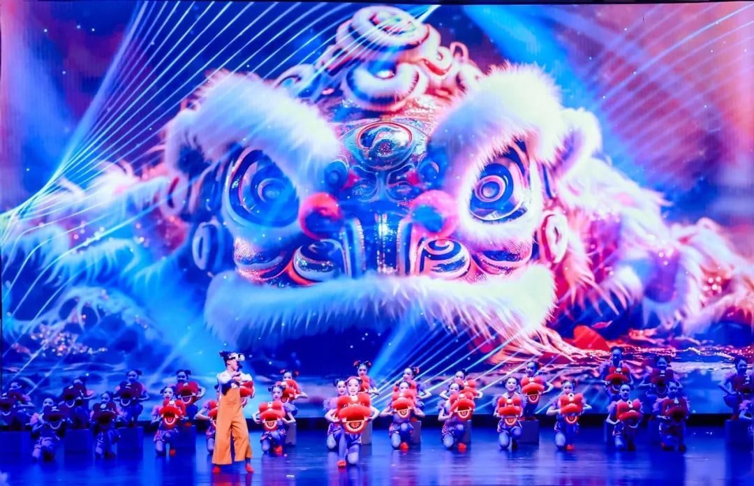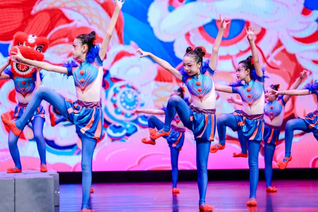 北京十二中朗悦学校的学生表演舞蹈《奇狮妙想》