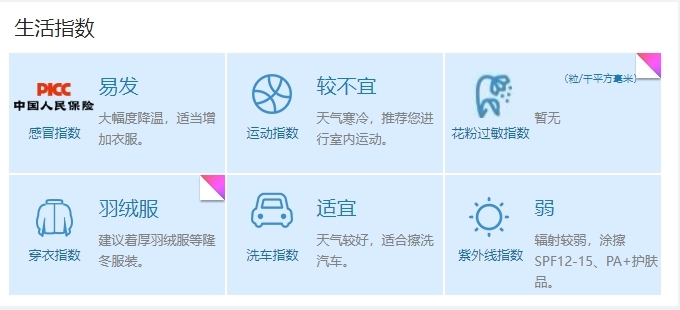 今天白天多云,山区有零星小雪,南风二三级,最高气温2℃;夜间多云,山区有零星小雪,南转北风一二级,最低气温零下6℃。