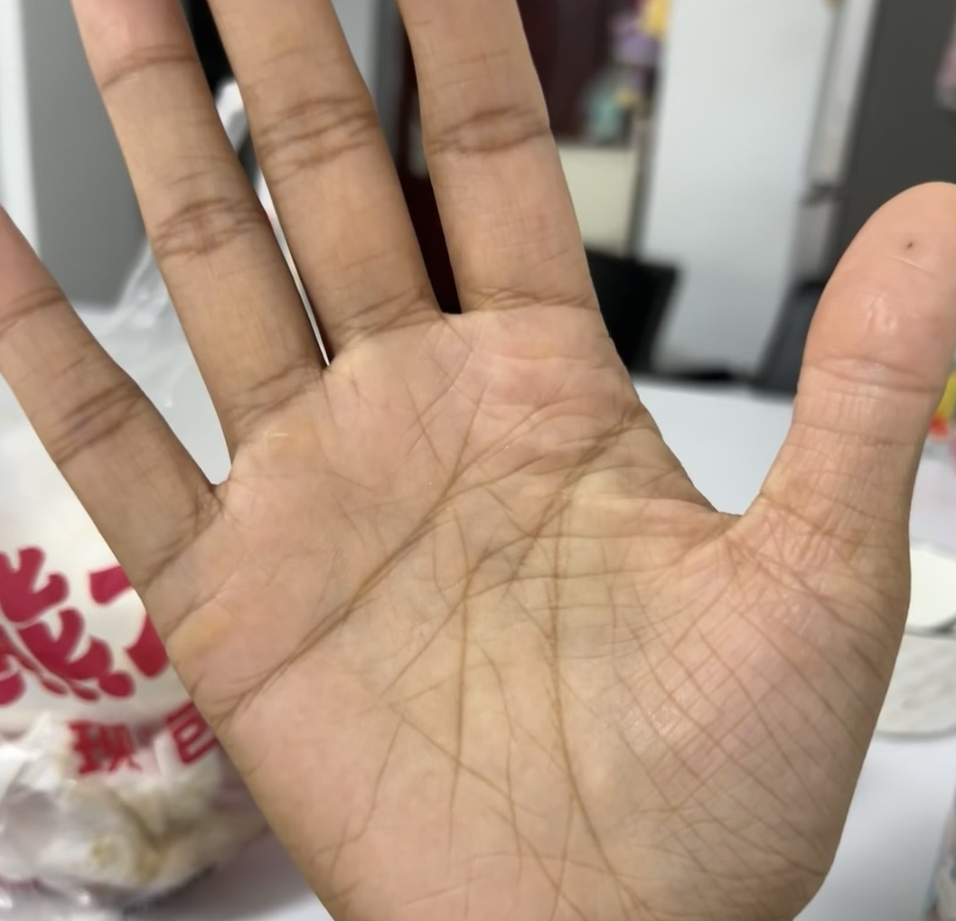 咱们可以伸出手看看,如果手掌上出现了5条以上清晰可见的纹路,每条都大于1厘米,横贯着手掌,尤其在大鱼际区域特别明显,这种掌纹过多的表现,往往说明存在角化异常。