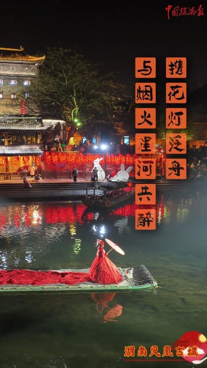 坐上有兔灯的湘见沱江沉浸艺术游船,沿沱江顺流而下,欣赏这别开生面的水上灯会,形态各异的花灯将一河两岸映照得亮丽多姿。