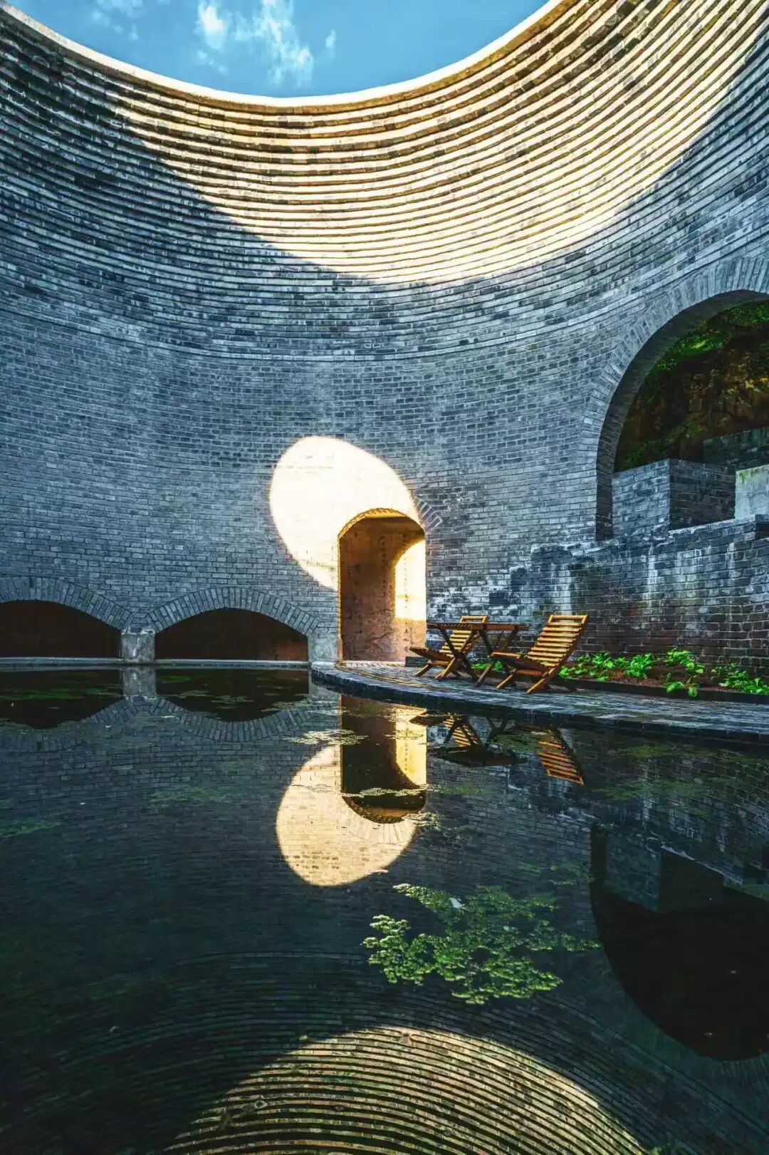 长城璞院向南进入两山深谷,自谷口东侧探出一角高台,台下果木丛生,台上留存一处山水井,毛石井壁至今仍坚实完整。天然形成的高台与人工遗迹的水井并置,场地本身已可供仰观的景致,登高返望,能借见远山的长城致胜,俯观井底,可想见昔日星光映照。故掇石固高台,复井以新池, 以“掬星”之名,揽山天之胜景。及至星夜,四下暗却,独坐井中,掬星饮月。天上一口苍穹,水中一汪星空,洗尘念于池,怀寰宇于胸。
