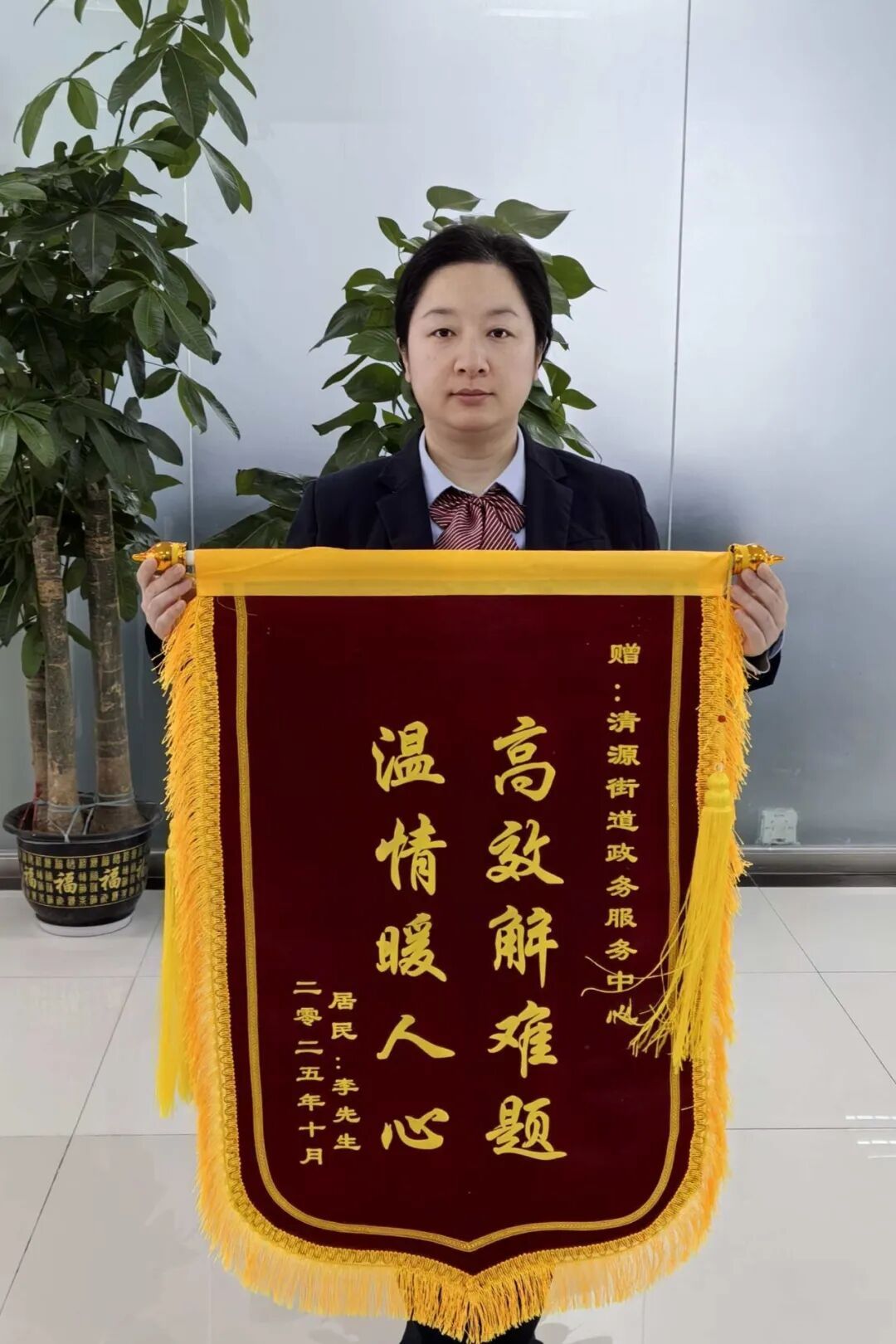务实作风结出硕果。今年以来,清源街道政务服务中心共办理服务事项12405件,其中网办事项3917件,提供延时服务542件,办结率始终保持100%。更令人鼓舞的是,中心收获了89封表扬信、24面锦旗,居民满意率高达100%。这些数字与认可,是对清源街道政务服务中心全体工作人员用心用情、务实为民的最好褒奖。