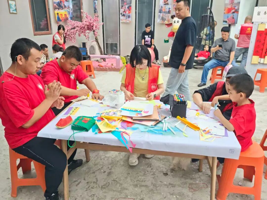 活动现场用鲜艳气球与卡通贴纸装饰,宛如童趣乐园。孩子们抵达后,义工热情迎接、相互介绍,现场暖意融融。上午 10 时,“绘梦时光” 绘画手工环节开启,义工与孩子一对一结对,耐心引导创作:爱绘画的孩子在协助下涂出五彩图案,喜手工的孩子跟着学习折纸。