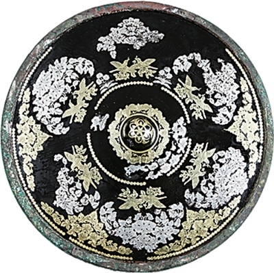 新疆吐鲁番市巴达木东墓群出土的金银平脱花鸟纹铜镜。