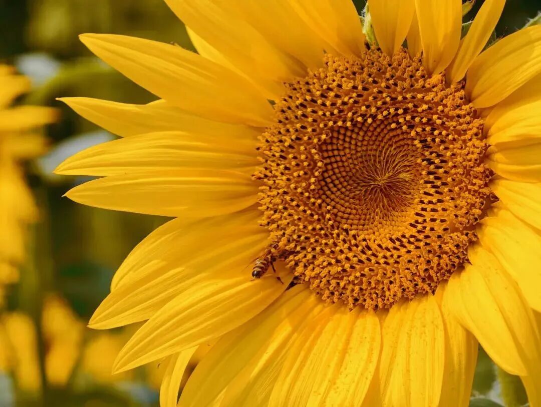 缀满螺旋排列的葵花籽