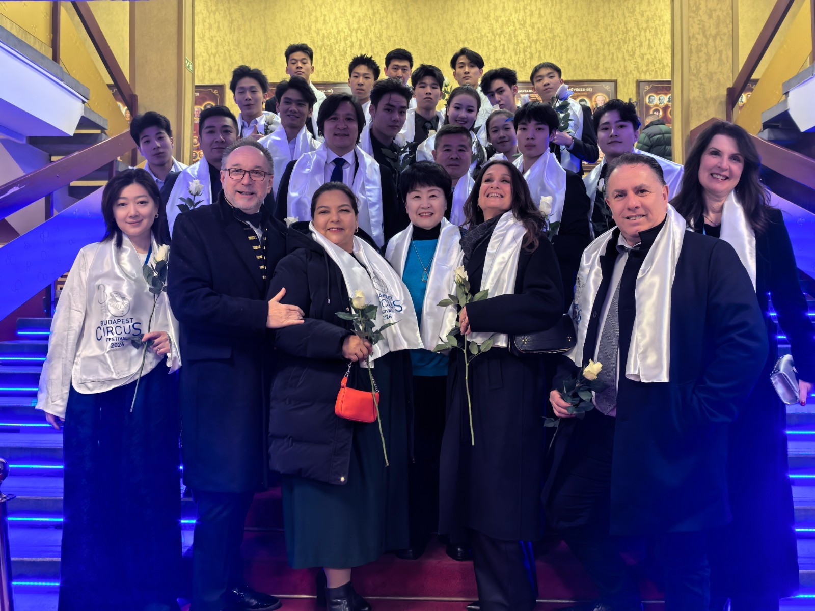 在闭幕式后,中国驻匈牙利大使龚韬一行亲切慰问了参赛的中国杂技团全体演职人员,并向大家取得的优好成绩表示热烈祝贺。