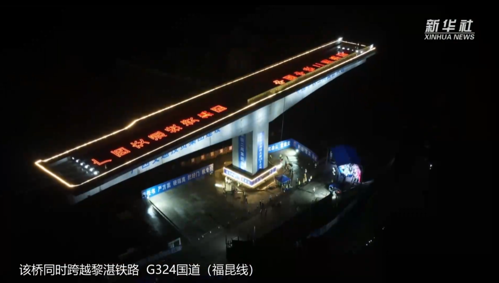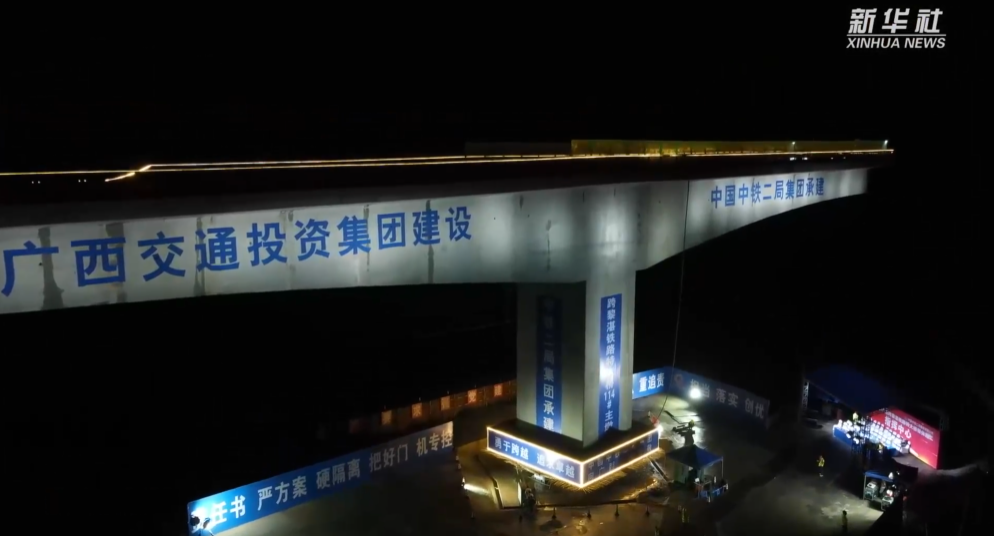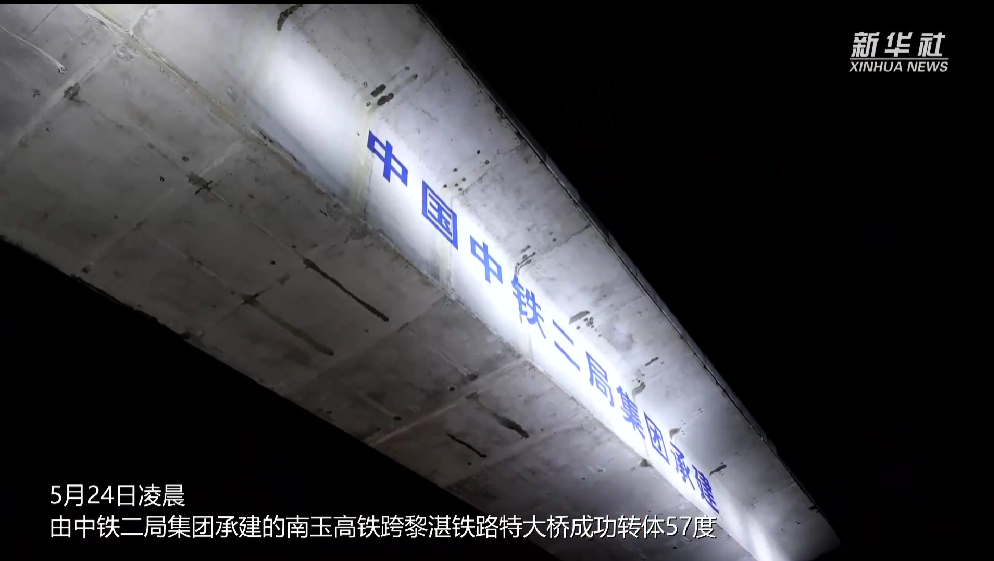 5月24日凌晨,由中铁二局集团承建的南玉高铁跨黎湛铁路特大桥成功转体57度。南玉高铁是南深高铁的重要组成部分,设计时速350公里。