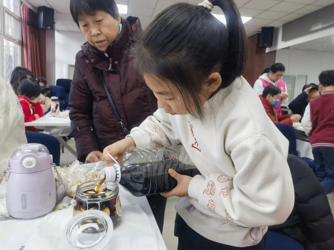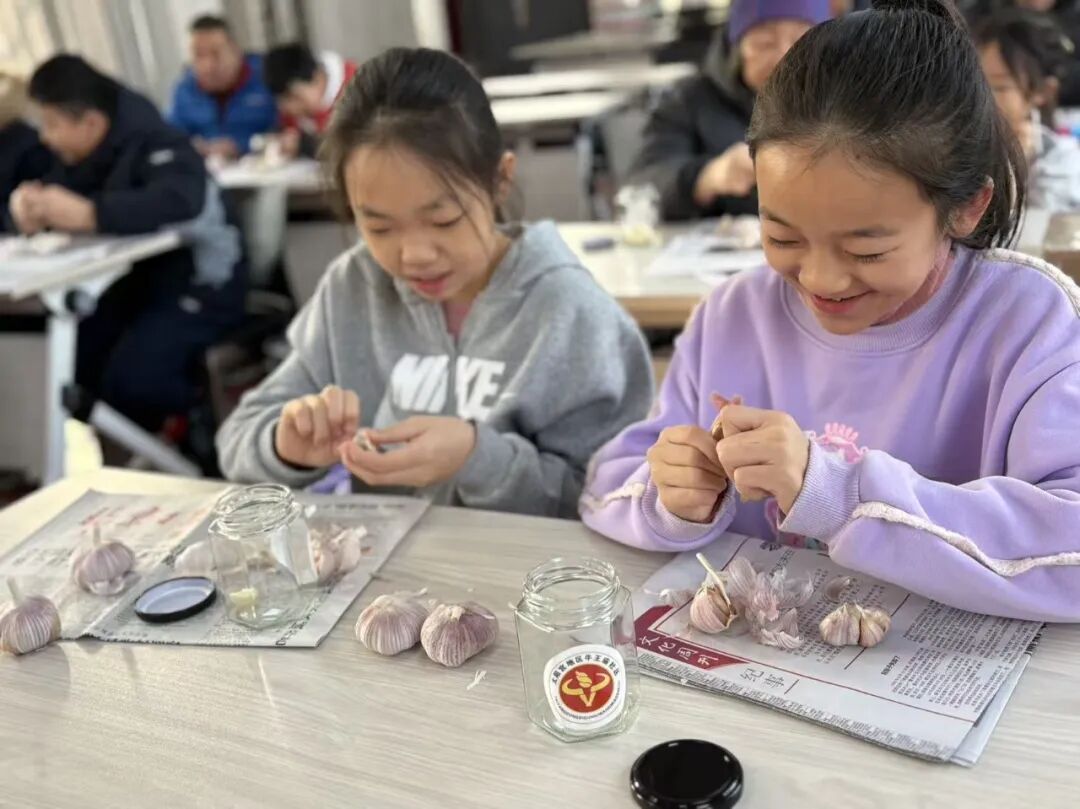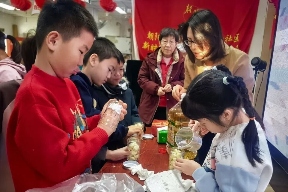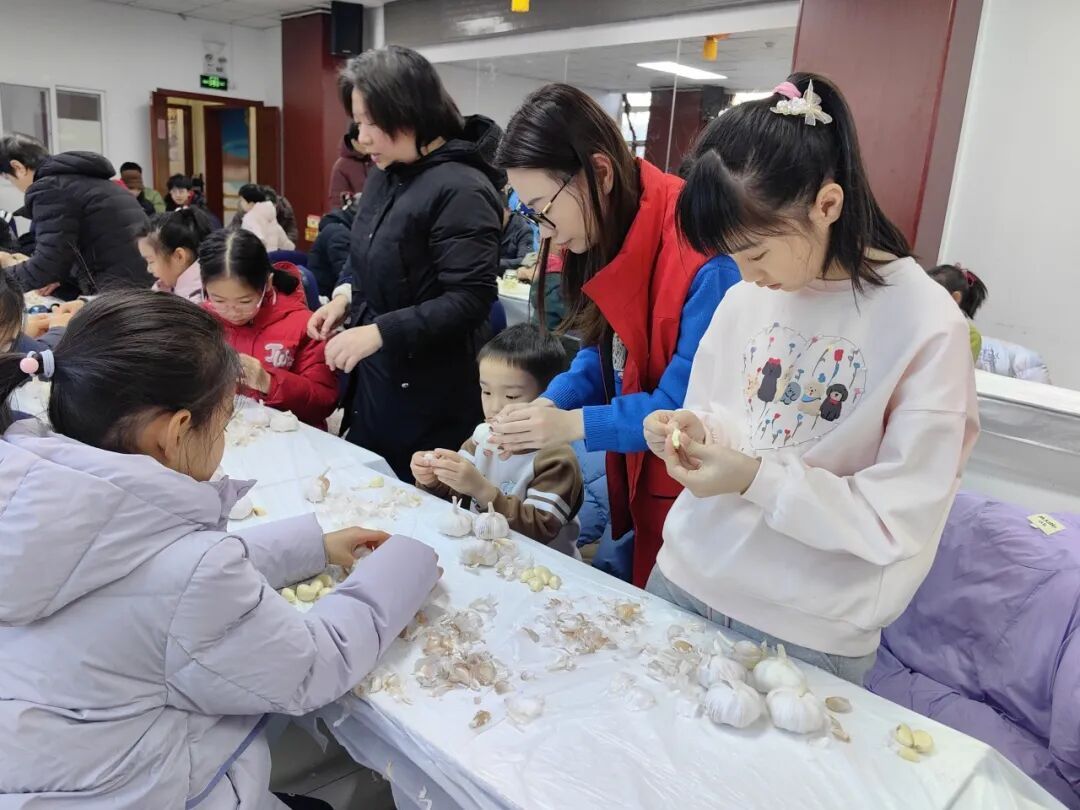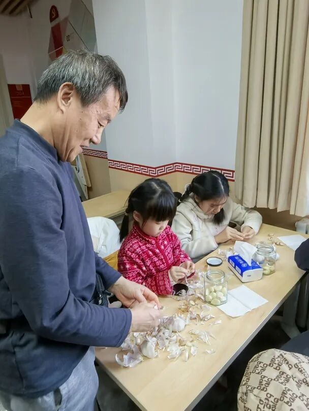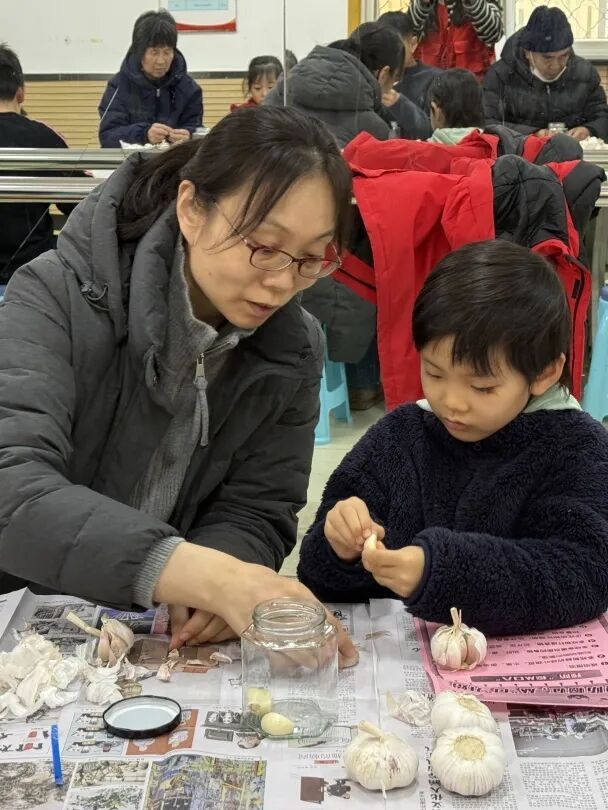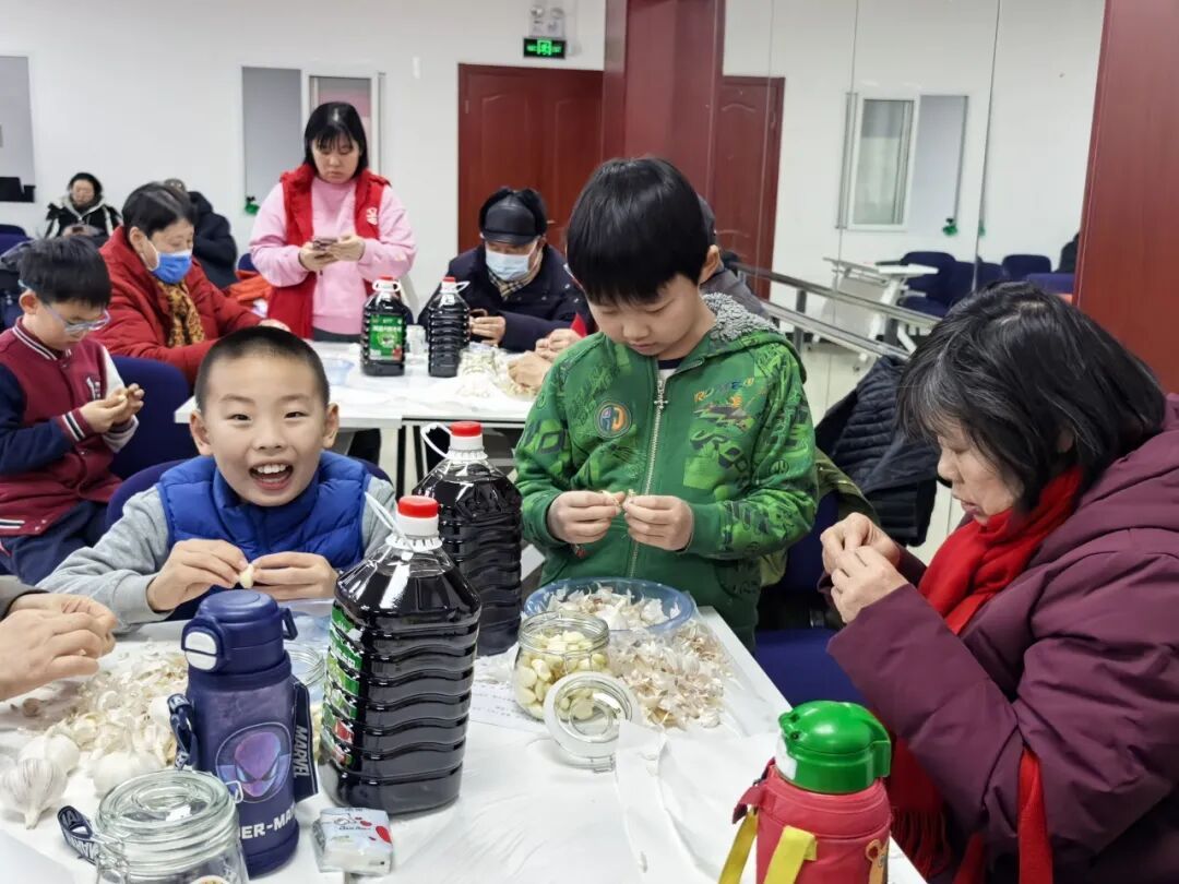 除了“粥”文化,还少不了一些特色食俗,腊八蒜是北方腊八节的标志性食物。各社区精心组织,让不同年龄段的居民都能参与到这一传统手艺的体验中,形成了一道传承有序、其乐融融的风景线。