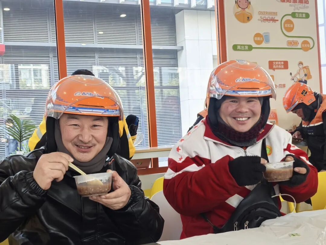 活动现场,工作人员将一碗碗热气腾腾的腊八粥递到环卫工人、外卖骑手、快递小哥等户外劳动者手中。150份精心熬制的腊八粥不仅温暖了双手,更浸润了心田,许多刚结束早间忙碌的户外工作者走进驿站,接过热粥,脸上绽开了笑容。“每天都赶着送单,也没注意到今天是腊八,这碗粥真是暖到心里了!”一位外卖小哥捧着粥碗感慨道。
