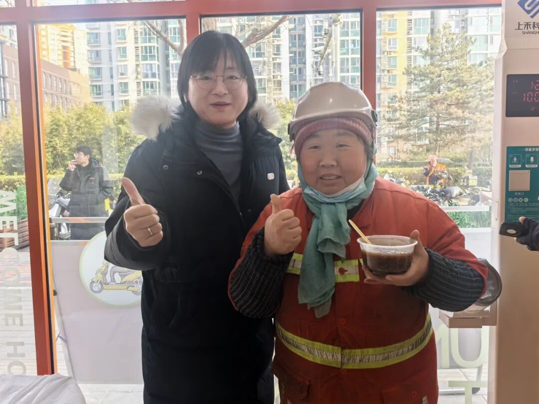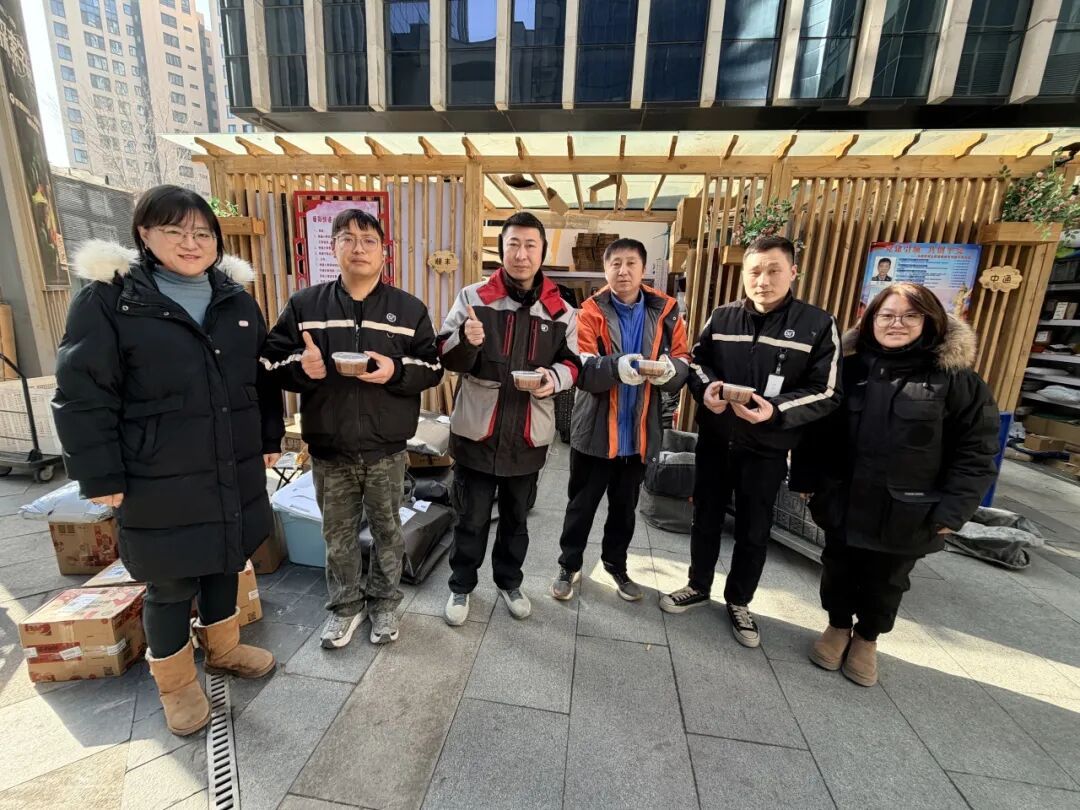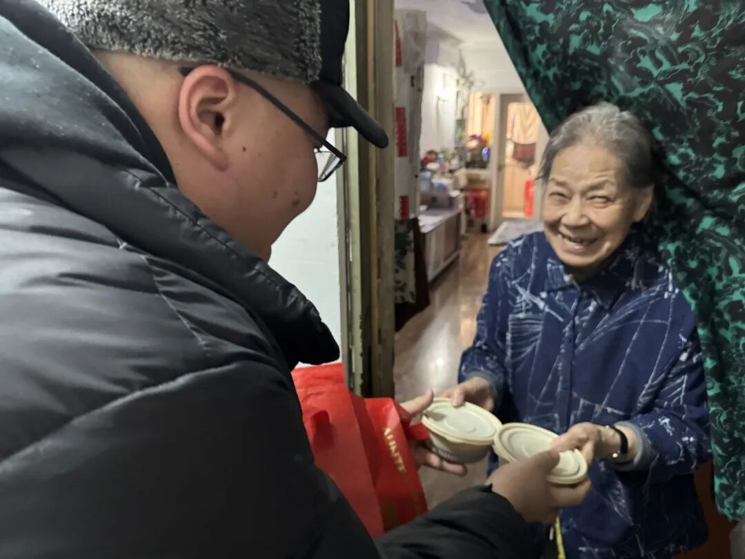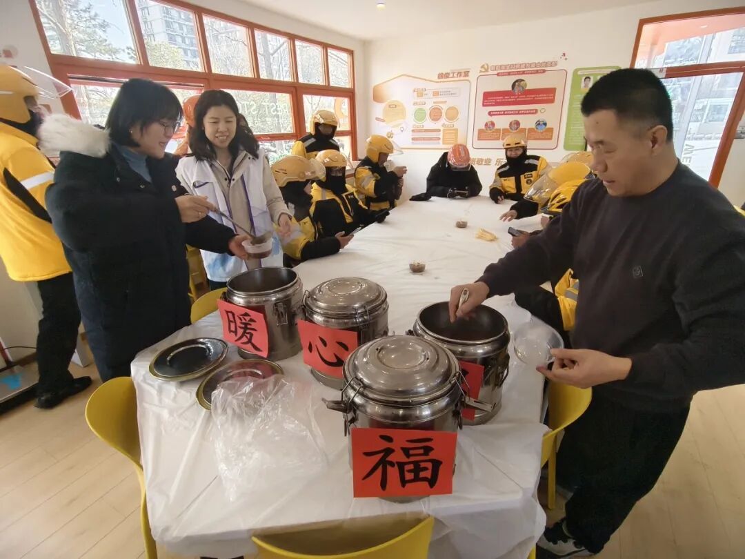 此外,各社区的“粥”到的服务也走进了新就业群体中。寒风凛冽,外卖骑手、快递小哥等新就业群体早已穿梭在大街小巷,为城市运转提供保障。社区工作者将精心打包好的腊八粥,送到辖区快递站点、外卖配送聚集点,“天气冷,喝碗热粥暖一暖!”一句句简单的问候,一碗碗甜暖的粥品,让这些平日里奔波忙碌的劳动者们在节日里感受到了来自太阳宫的尊重与关怀。“一大早忙得还没吃上饭,这粥太及时了,心里特别热乎。”一位外卖小哥接过粥,笑容朴实。