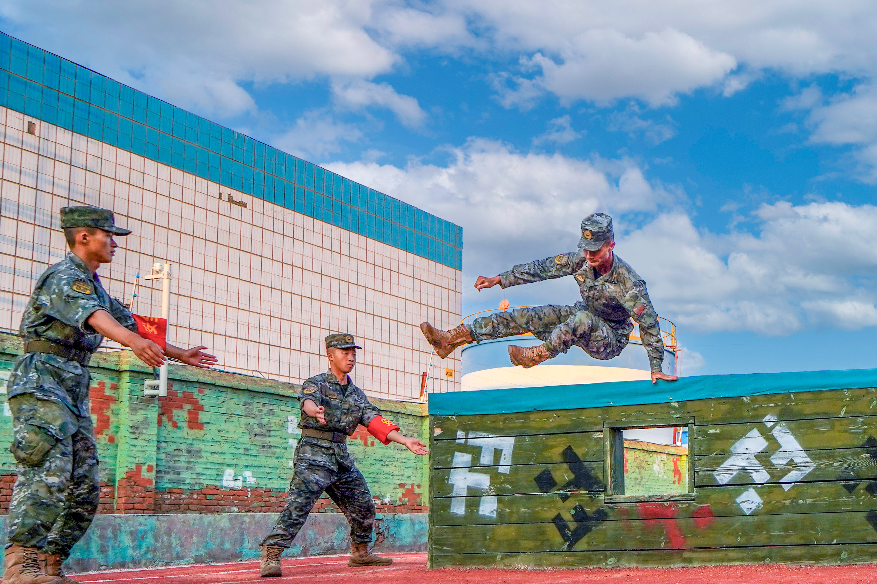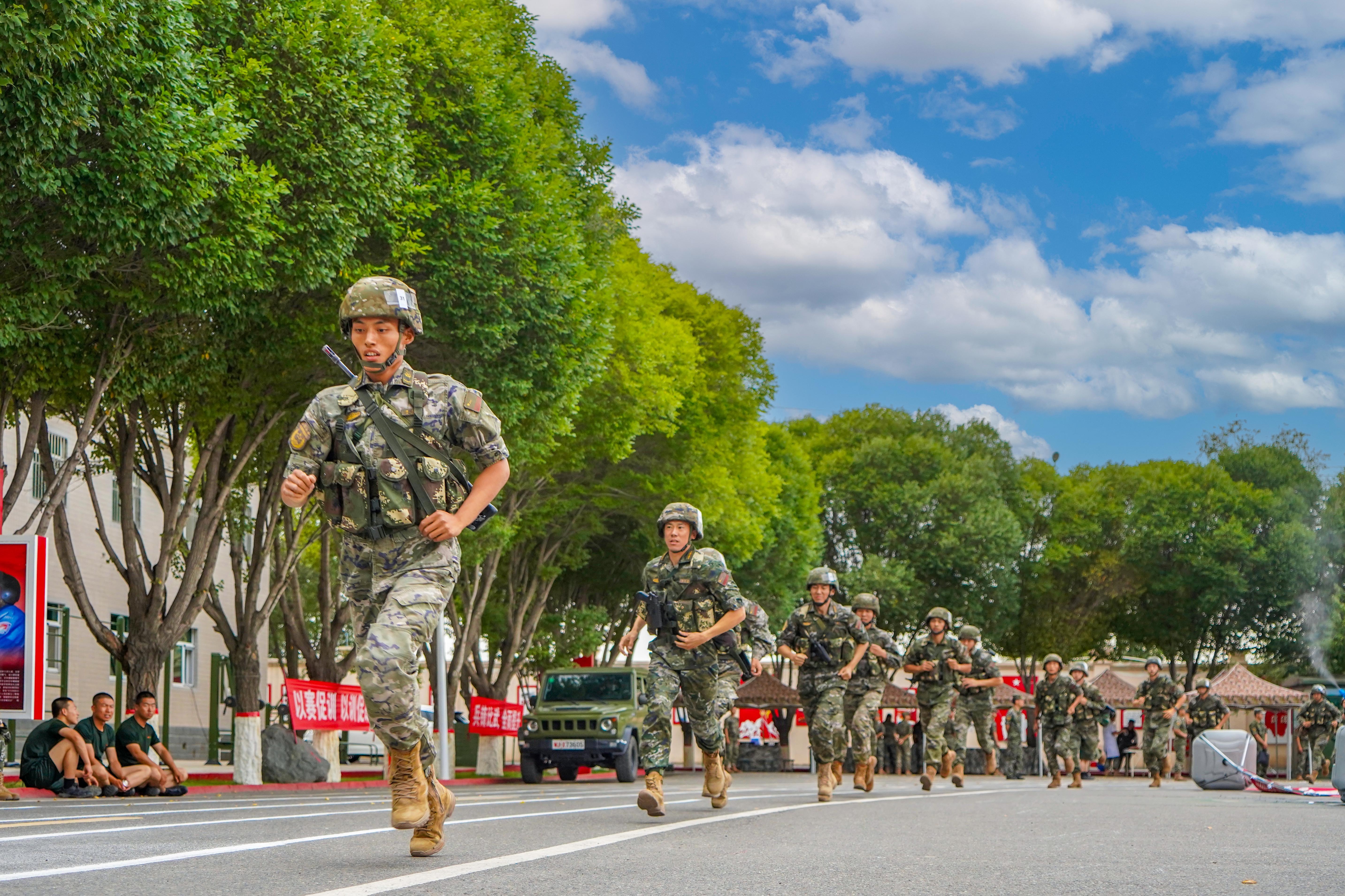 “李永辉,加油!李永辉,加油!”在战斗体能比武现场,一级上士李永辉作为本次比武队员里兵龄最长、年龄最大的的选手,可谓是后发制人,一鸣惊人。凭借着自身十年如一日的自律,每日加压强训的努力,最终以2分43秒的成绩夺得该课目的第一名。加油声、呐喊声,充斥着比赛现场。