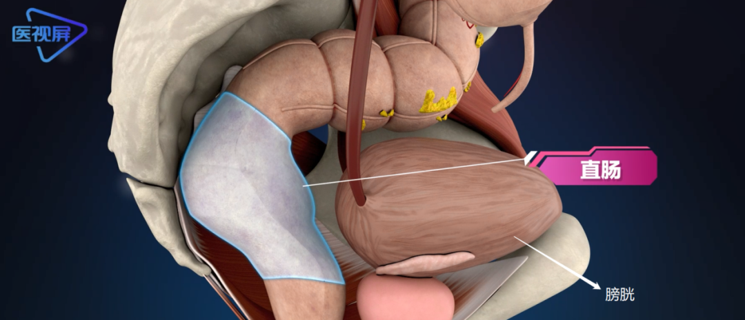 直肠是消化管位于盆腔下部的一段,全长10-14cm。直肠上端平第3骶椎,下端到盆膈。直肠的后面是骶骨和尾骨;在男性直肠的前面有膀胱、前列腺和精囊;而女性则是子宫和阴道。
