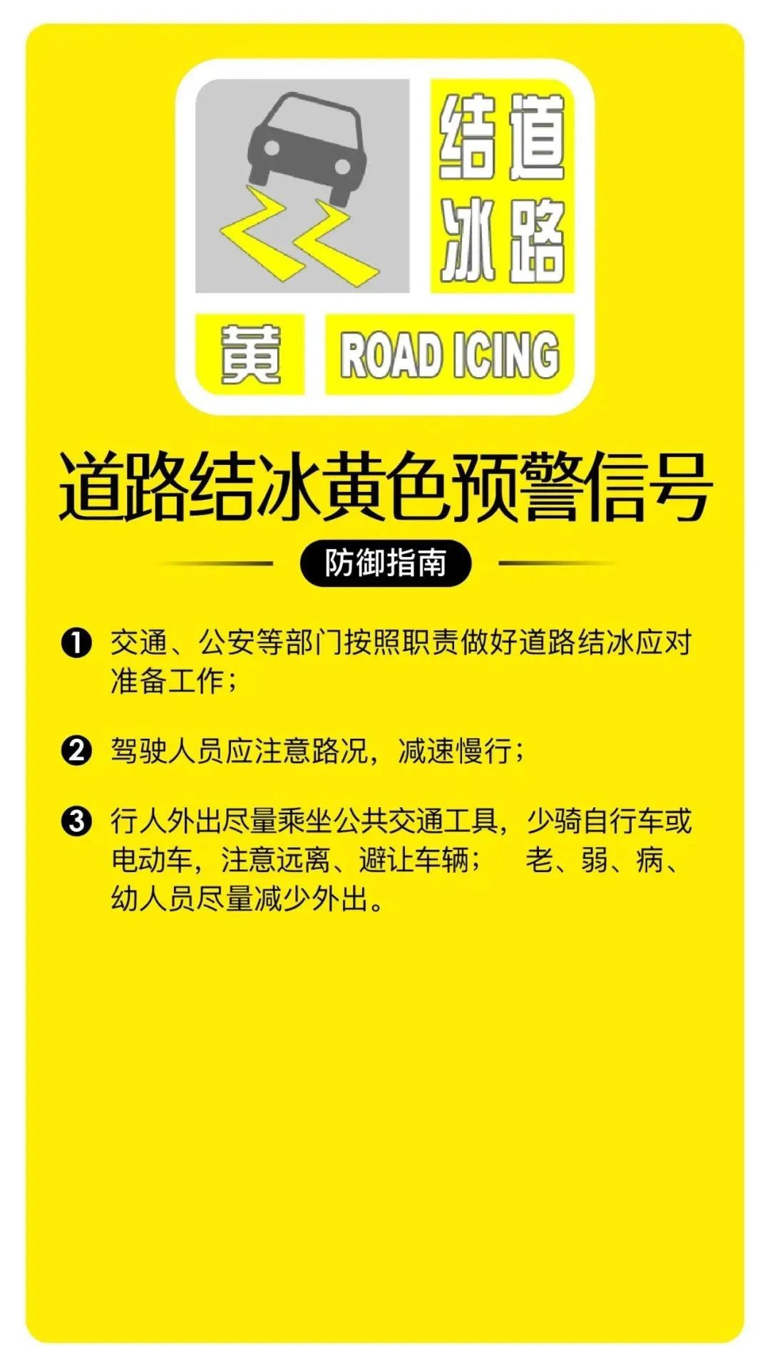 道路结冰黄色预警信号发布