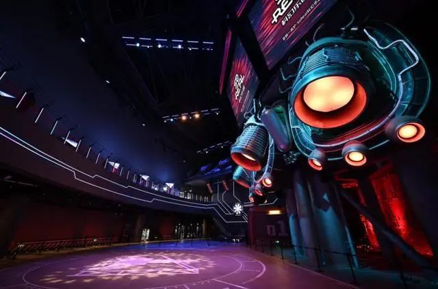 场馆内,33 META CLUB未来空间是一所集文化展览、活动发布、电竞赛事、演艺演出、音乐酒吧等于一体的多功能复合空间,在空间改造与设计上最大限度保留了首钢百年高炉遗迹原有的建筑结构和工业风貌。在原33米挑高结构的基础上,将赛博朋克设计元素、现代灯光舞美以及XR扩展现实沉浸体验技术科学整合,重塑工业遗产建筑空间。