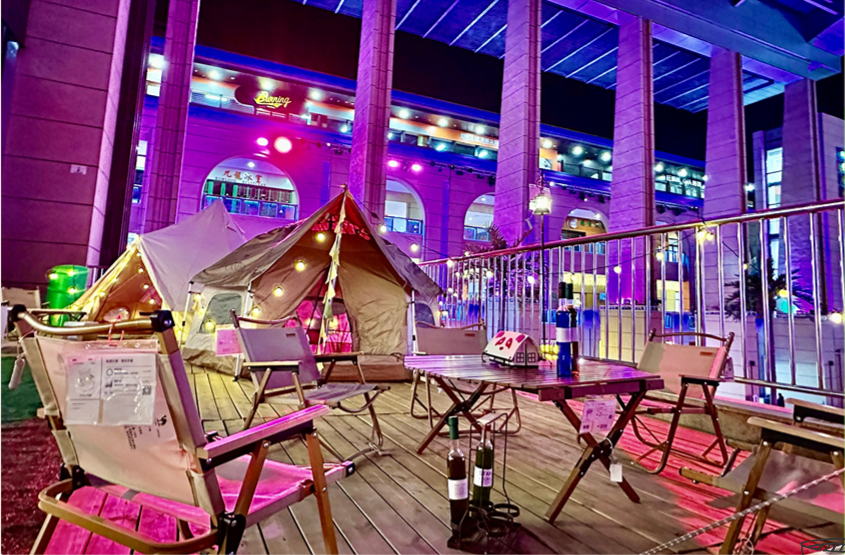乐多港万达广场组织策划了城市漫生活露营节,活动与国内知名啤酒品牌积极联动,打造“啤酒+露营+美食”模式。