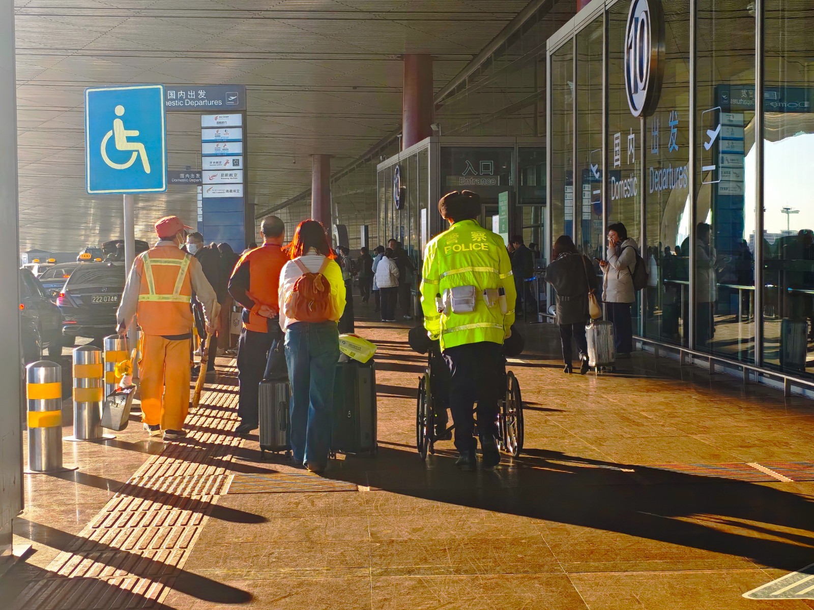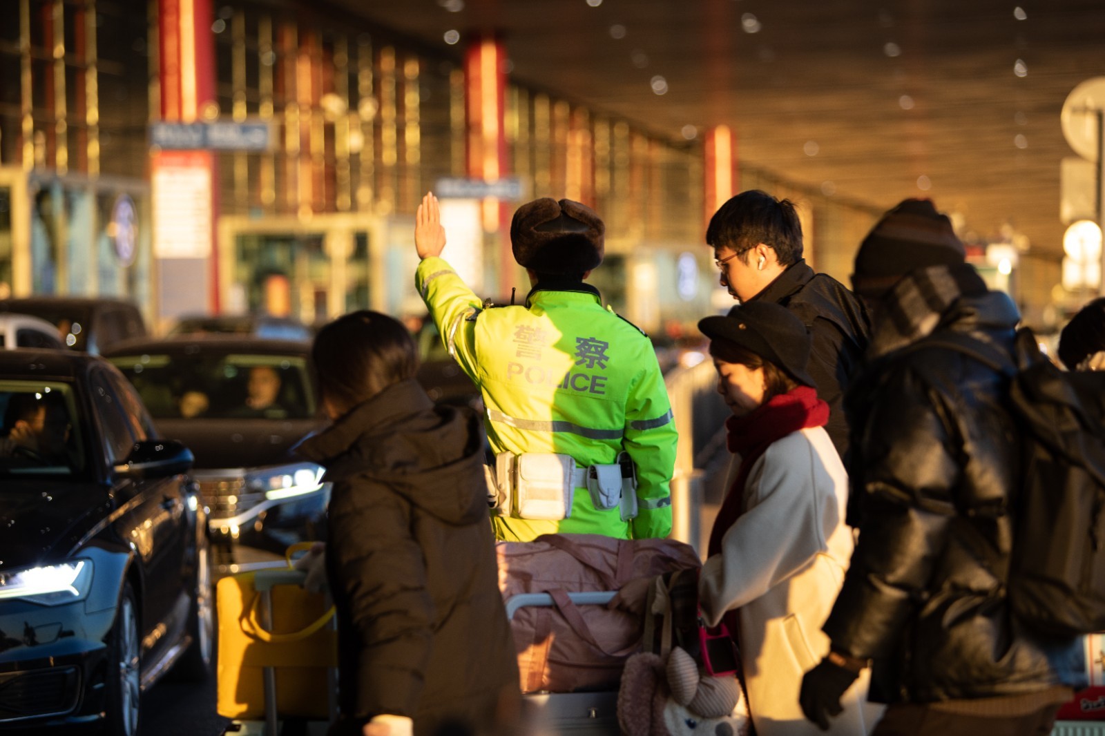 春运期间航班密集,接送站车辆短时聚集,机场周边道路通行压力显著增大。清晨七点半,首都机场三号航站楼引桥处已是车流如织。执勤民警彭箭在快速处理一起轻微剐蹭事故后表示:“我们根据航班和车流变化,实时调整执勤点位,在航站楼进出口、交通节点加强疏导,尽力让车辆有序通行,减少旅客等候时间。”