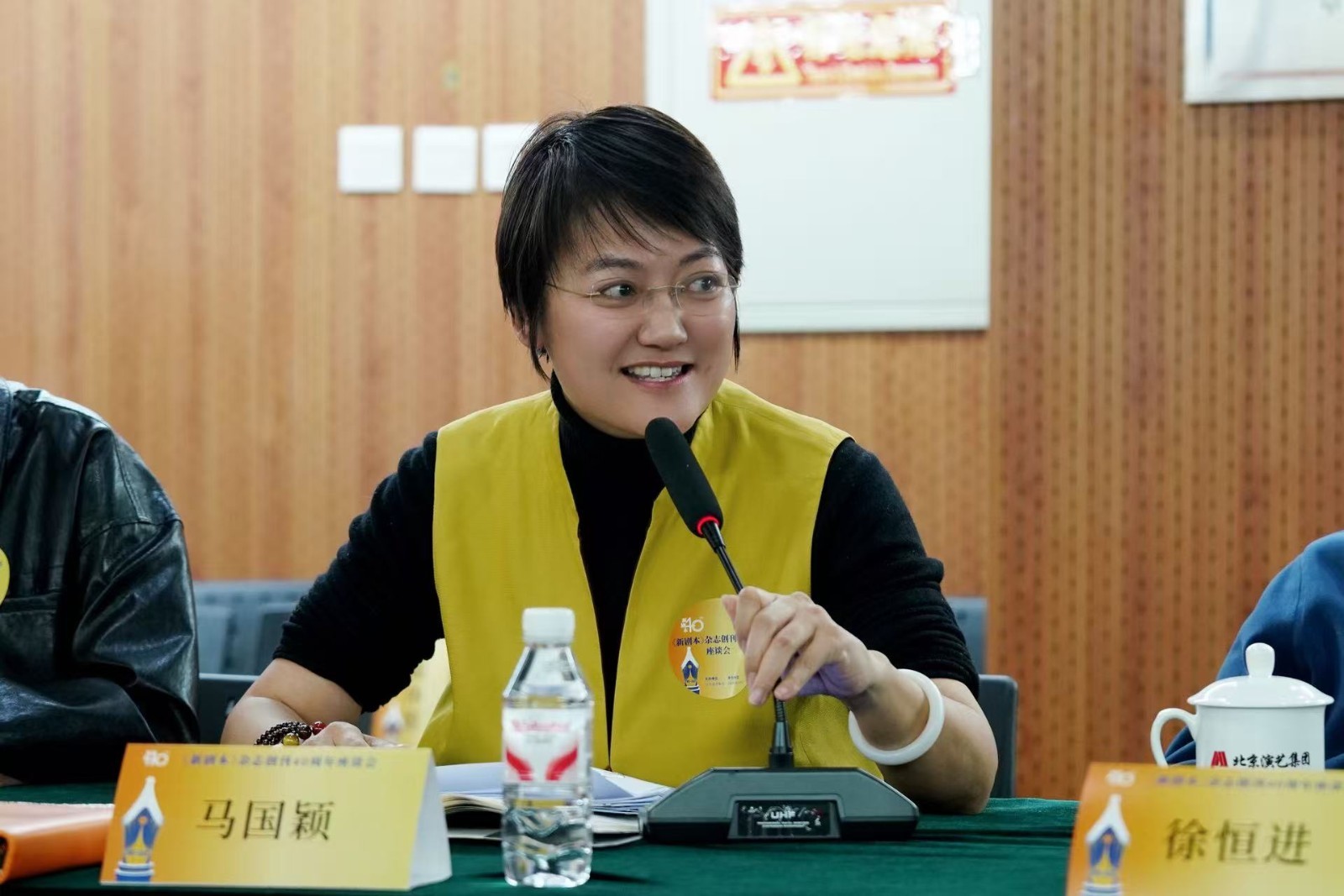 《新剧本》杂志创刊40周年座谈会上,中国戏剧家协会分党组书记、驻会副主席、剧作家陈涌泉,首都文化科技集团副总经理、北京演艺集团党委书记、董事长董宁与为《新剧本》杂志做出重要贡献的《新剧本》杂志原主编、原北京市文化局二级巡视员徐恒进,《新剧本》杂志编委会成员、北京演艺集团原总经理、一级编剧王珏,《新剧本》杂志编委会成员、《新剧本》杂志原主编、一级编剧林蔚然,以及一直以来支持《新剧本》杂志工作的剧作家、戏剧评论家欧阳逸冰,《新剧本》杂志编委会成员、剧作家、上海戏剧学院教授、中国艺术研究院博士生导师罗怀臻,北京大学中文系教授、全国政协委员张颐武,《新剧本》杂志编委会成员、中央戏剧学院戏剧文学系教授、博士生导师张先,天津大学地域文化研究中心执行主任邵延枫,中央戏剧学院戏剧文学系主任、教授、博士生导师麻文琦,《新剧本》杂志编委会成员、上海文广演艺集团副总裁、上海话剧艺术中心艺术总监喻荣军,北京儿童艺术剧院创作部副主任、二级导演王泽,青年编剧、策划人孙钰熙共同出席。北京市文联副主席、北京演艺集团品牌推广部部长、《新剧本》杂志主编马国颖主持座谈会。