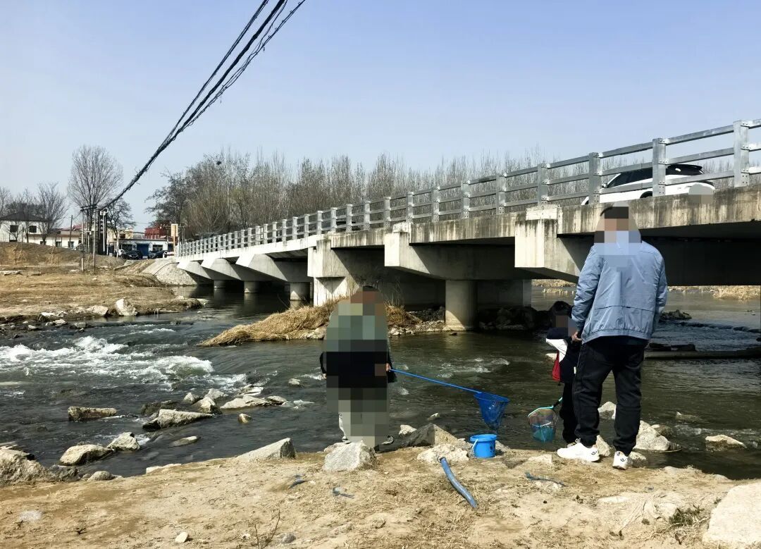而在河道边,另一块警示牌上写着“请勿在河道内捕鱼、野外用火、倾倒垃圾……”,附近广播里也反复播放着相关提醒,但不少露营者并未理会,拿起鱼竿、抄网,带孩子直奔河道。嗅到商机的小贩开着三轮车,在河道边摆摊售卖各类渔具。