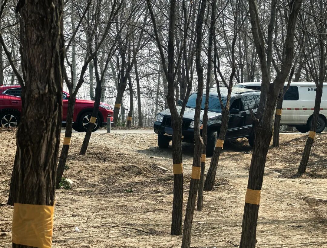 3月21日,北京晚报记者来到多名网友提及的两间房桥,发现河道两侧有成片树林。为防止车辆开到河道边,多个入口已经封堵,部分路段还专门挖沟阻挡,但仍有游客从树木与水泥墩之间找出空当,斜着把车开下来。