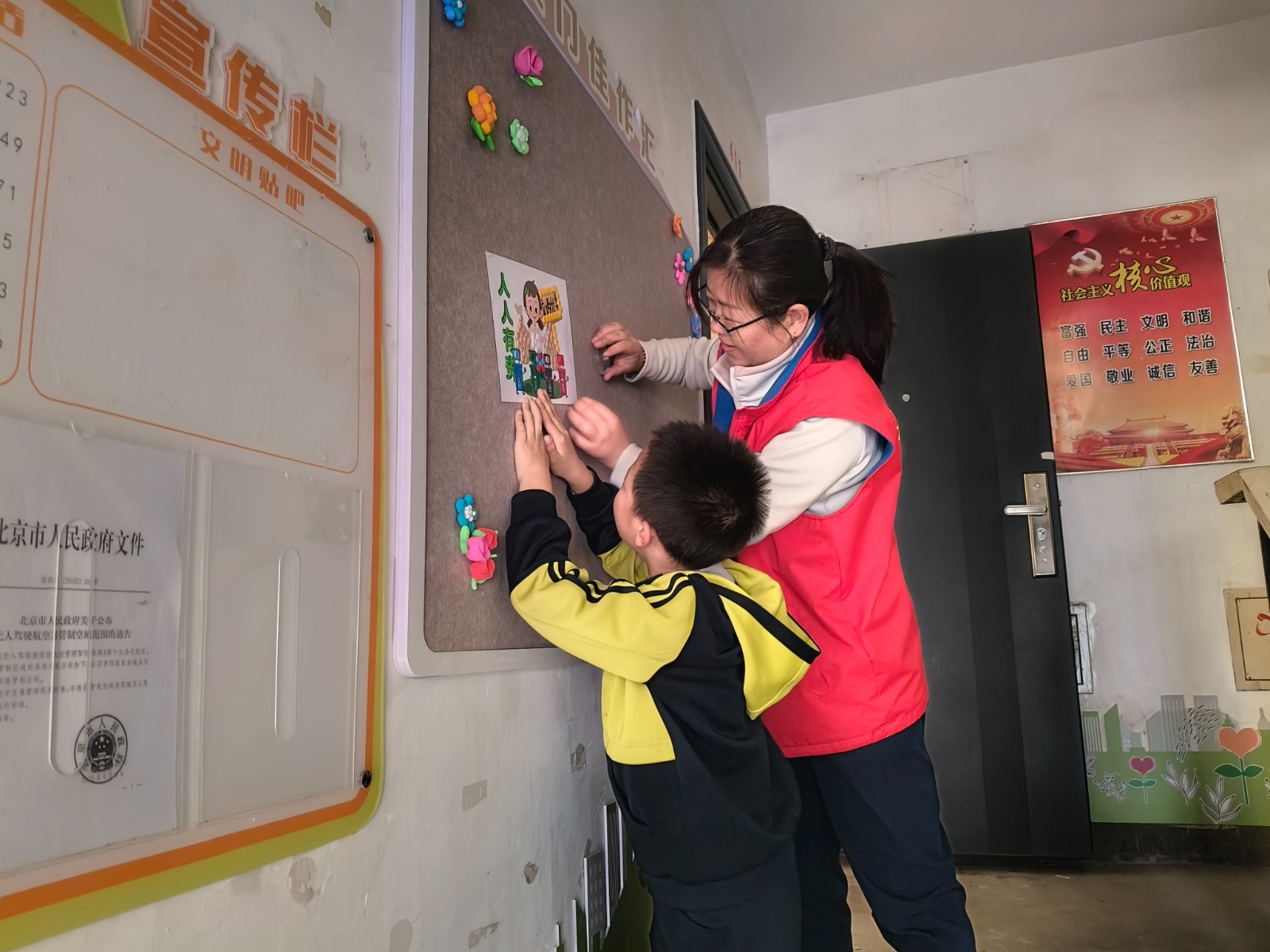 冬日暖阳下,水屯家园社区的一处普通楼门里,63岁的文阿姨正和9岁的高梓瑄小朋友一起往墙上粘贴精心制作的非遗浆纸画、纽扣画作品。这个由老少两代人共同完成的“邻里和睦图”,成为这个楼门最美的风景。2026年伊始,一场以“一老一小”为主角的楼门改造行动,让这个老旧小区的公共空间焕发出新的生机。