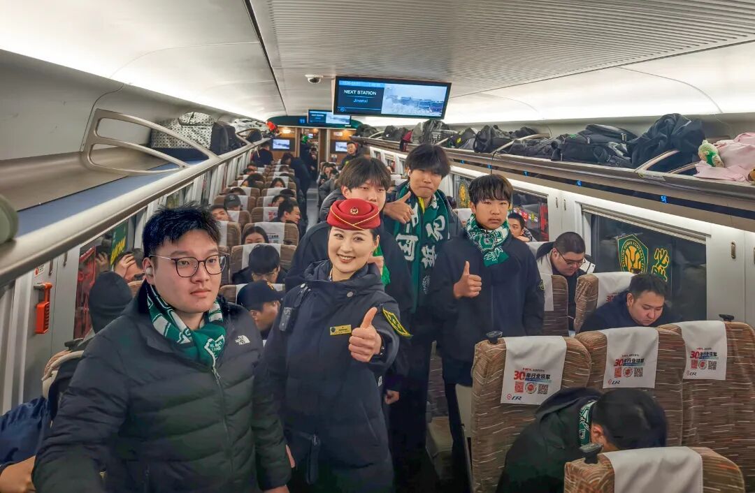 据了解,2026年中国足球协会超级杯比赛将于3月1日在南京奥体中心体育场举办,由北京国安足球俱乐部对阵上海海港足球俱乐部。为方便北京球迷赴南京现场为心爱的球队加油助威,国铁北京局积极响应市场需求,主动对接、精心组织,通过优化运力配置,开行了此次G43次“球迷列车”,并在车厢内营造氛围,全力保障球迷的跨城观赛之旅。