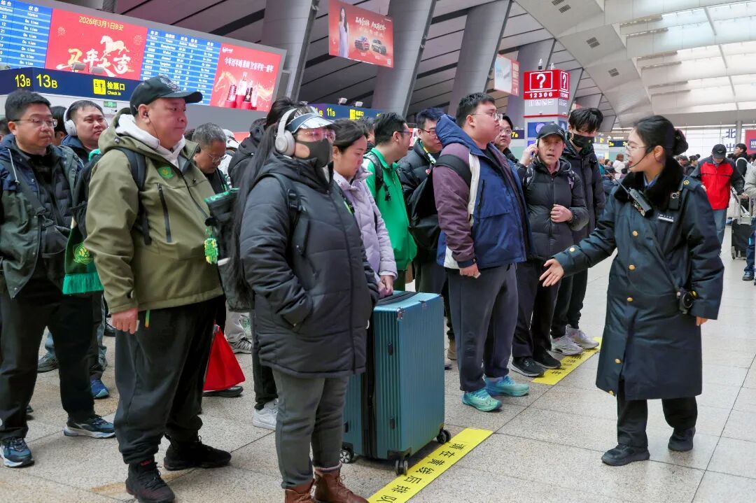 为确保近400名球迷旅客安全、有序、温馨出行,北京南站积极联系对接球迷协会,了解赛事日程、观赛规模等信息,动态研判客流数据,做好开行计划核对,制定了周密的运输组织方案。车站通过开放充足安检进站通道、加密广播频次,并在进站口、检票口、站台、电扶梯等部位增加人员进行安全提示、解答问询和宣传引导。针对集中出发的球迷旅客,车站提前规划候车检票区域,合理规划流线确保进站乘车高效顺畅。